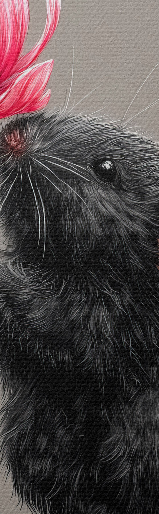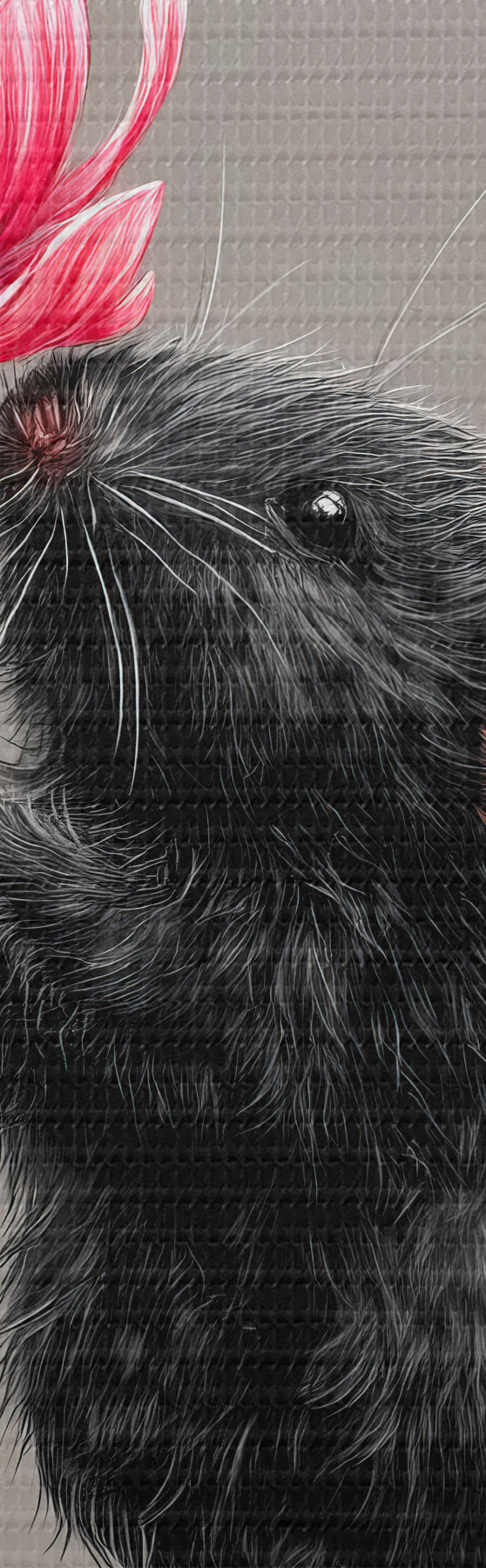 Obraz Urocza myszka wdychająca aromat różowej piwonii Nr s44248