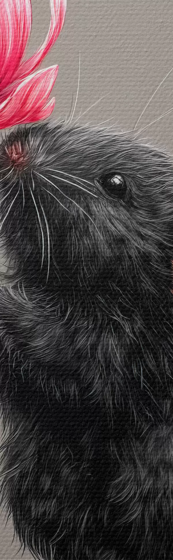 Obraz Urocza myszka wdychająca aromat różowej piwonii s44248
