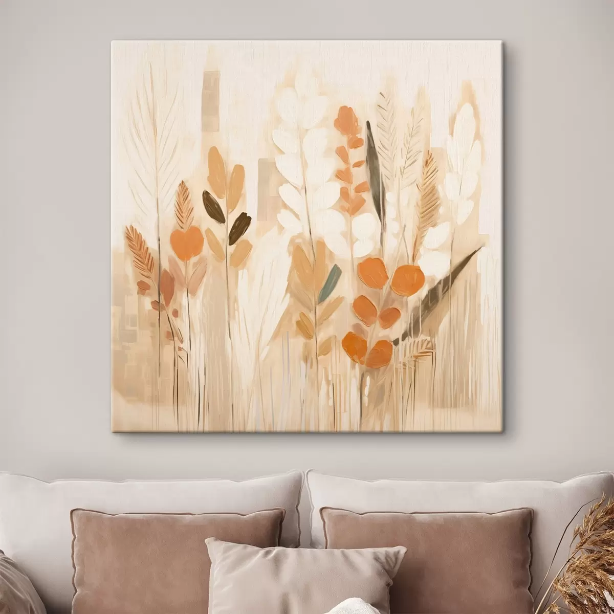 Obraz Ciepła abstrakcja z polnymi trawami i kwiatami w beżowo-pomarańczowej palecie w stylu Art Nouveau Nr s44252