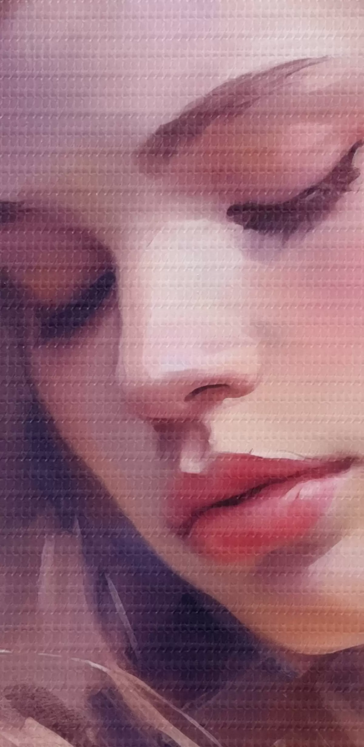 Drobny splot nici na tym płótnie przypomina powierzchnię profesjonalnych płócien artystycznych.