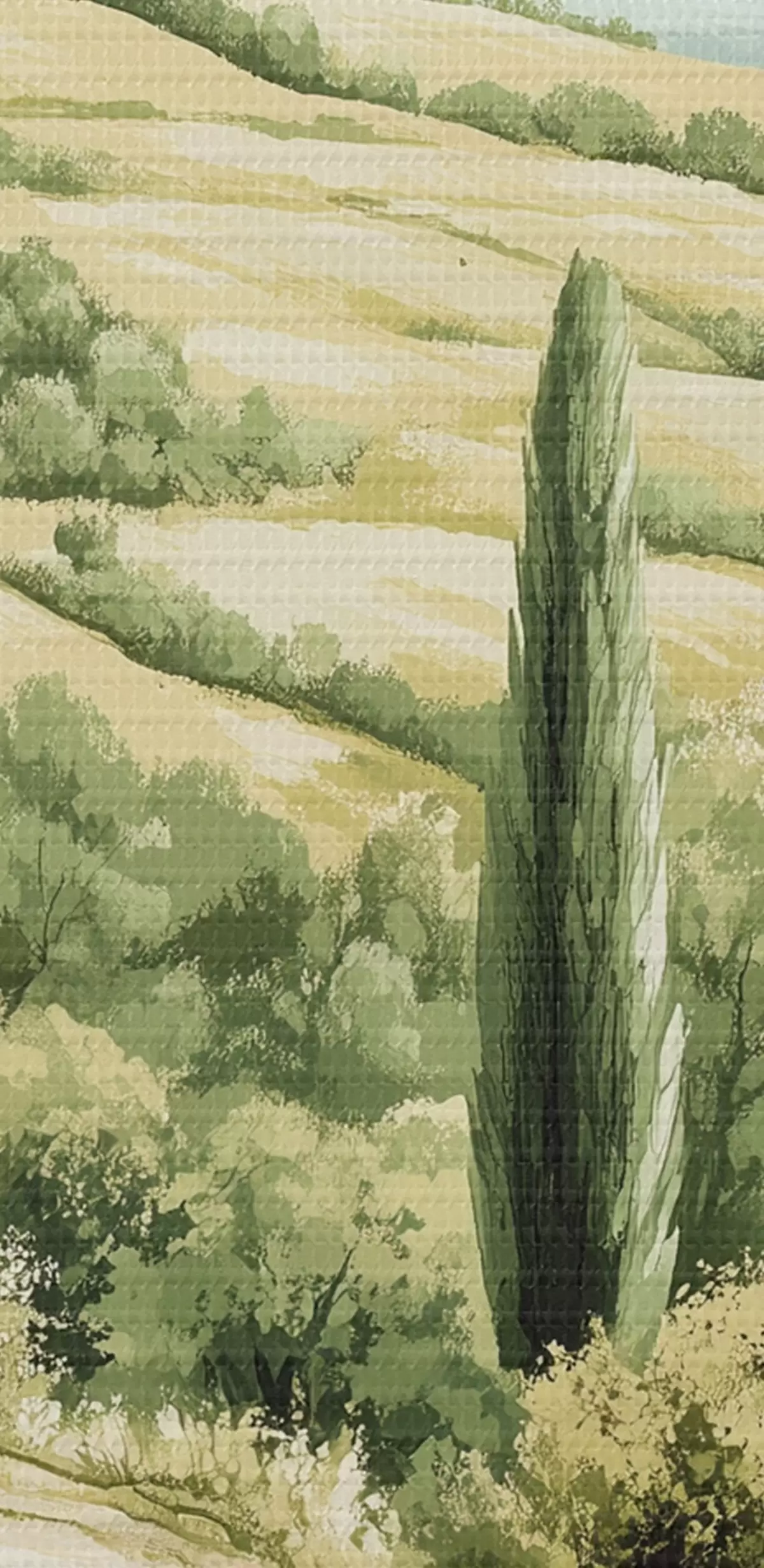 Obraz Letnie krajobrazy z cyprysami i zielonymi wzgórzami, styl rustykalny s44308