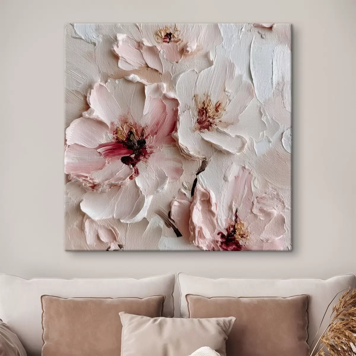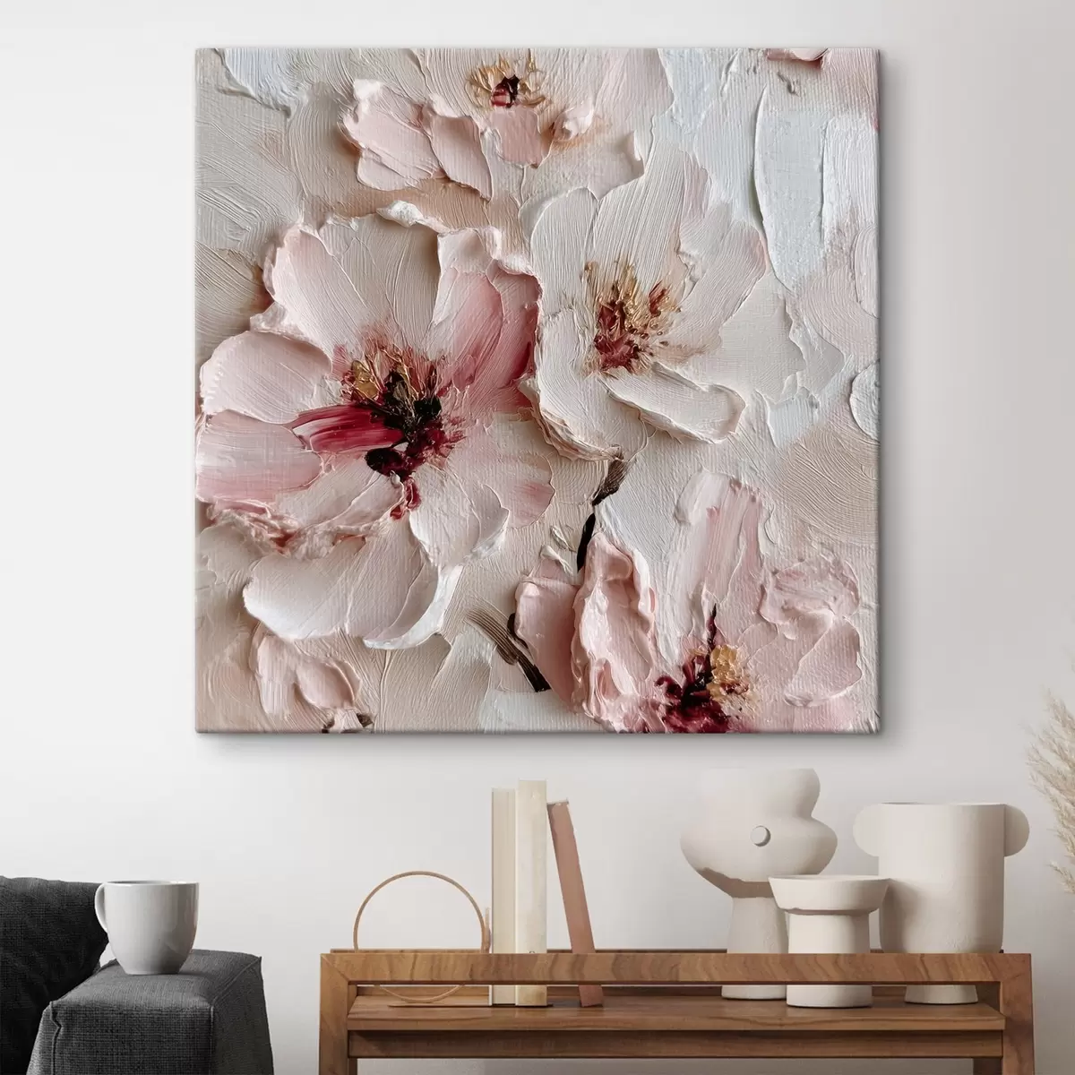 Obraz Kwiaty z imitacją w stylu impasto w różowych i białych pociągnięciach Nr s44333