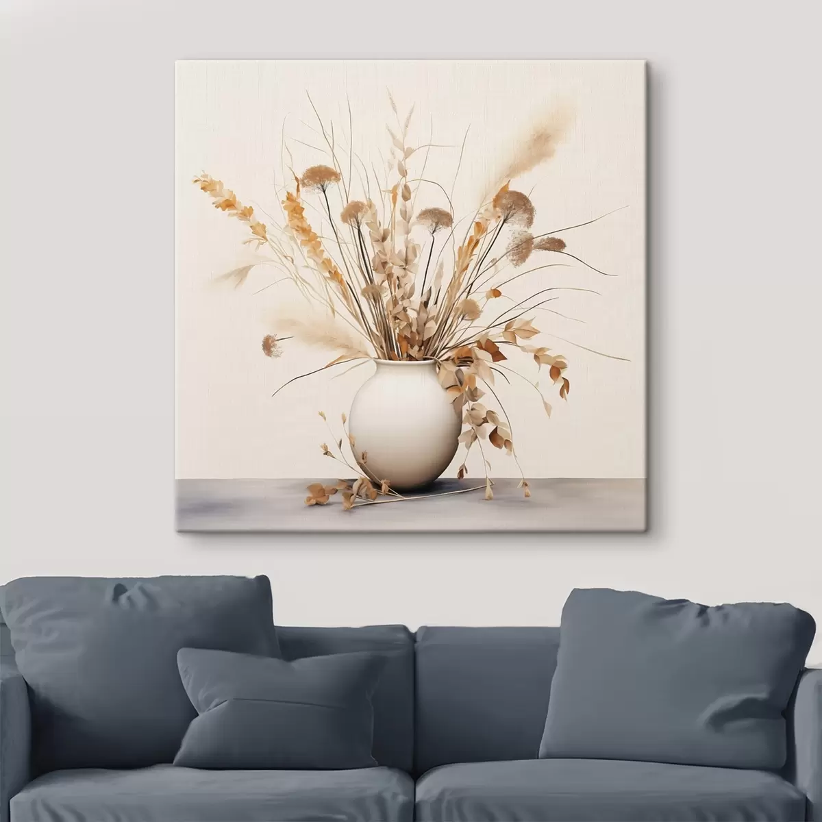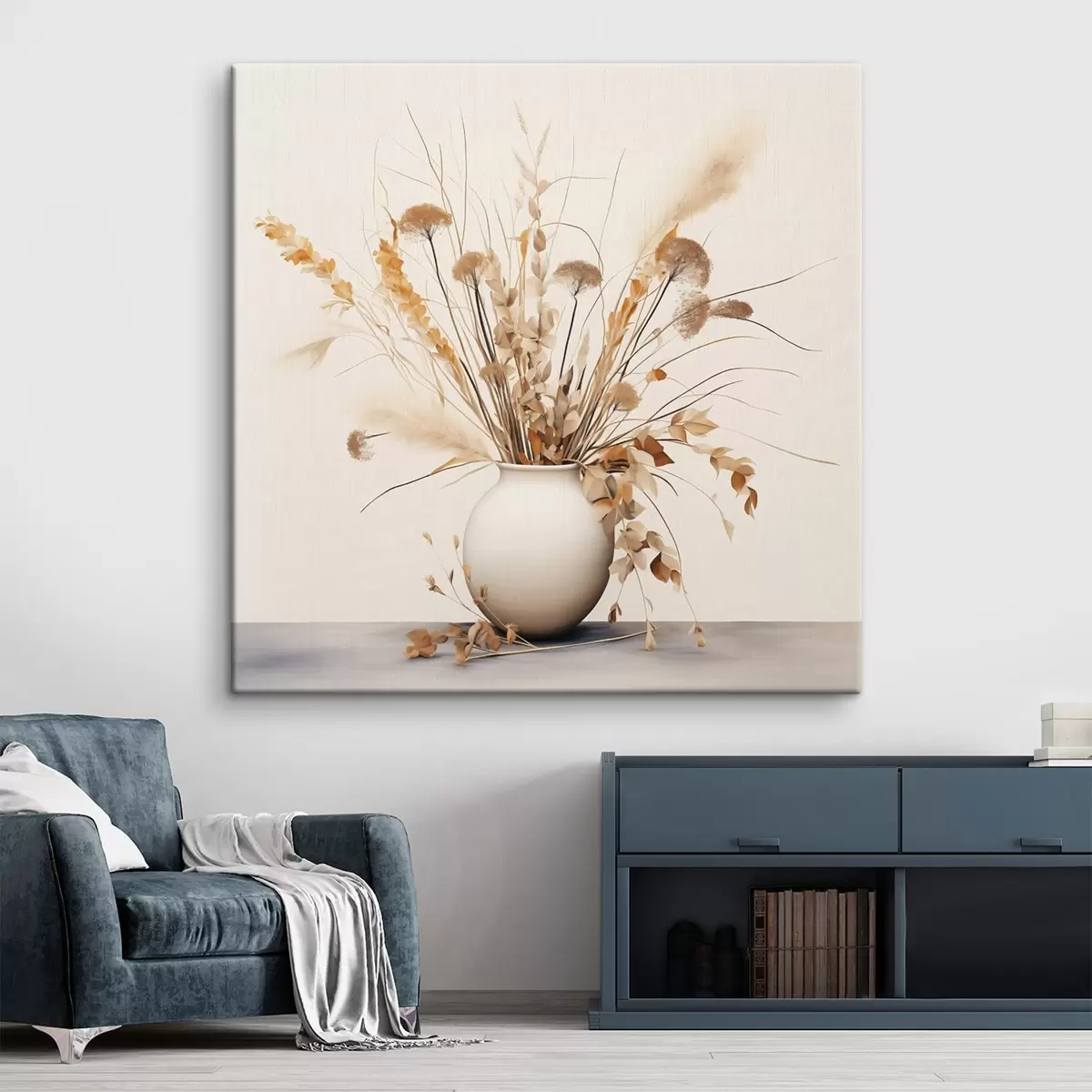 Obraz Układ suszonych traw i kwiatów w białym wazonie Nr s44348