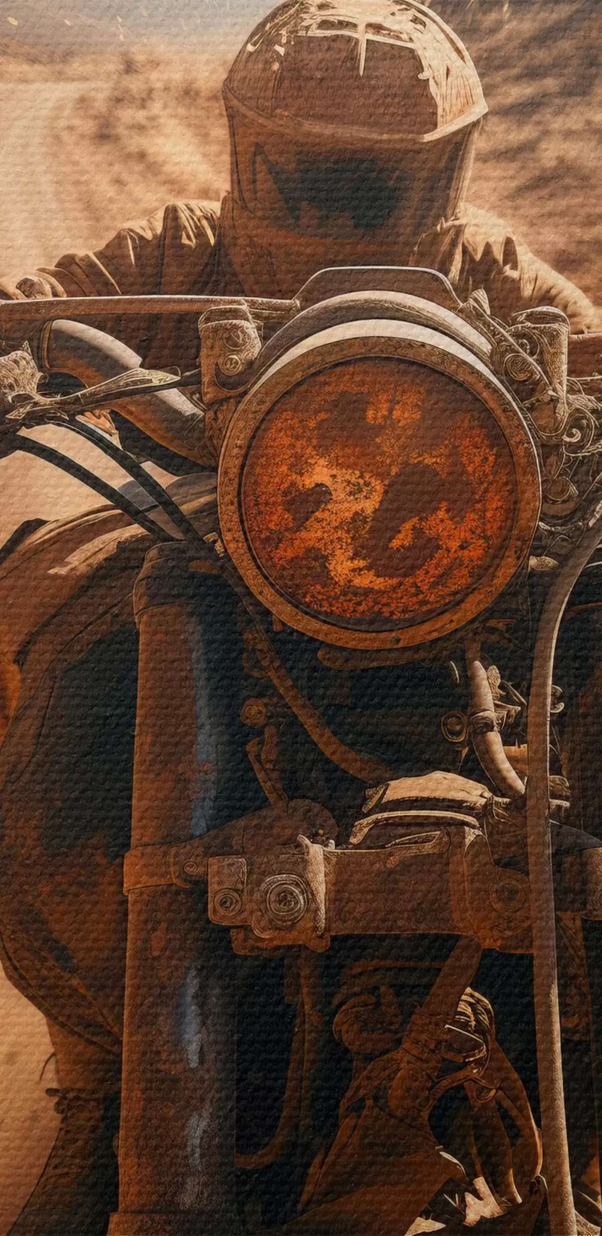 Obraz Motocyklista pędzący pustynną drogą Nr s44361