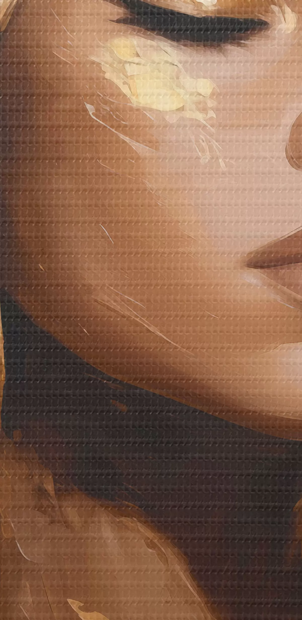 Drobny splot nici na tym płótnie przypomina powierzchnię profesjonalnych płócien artystycznych.