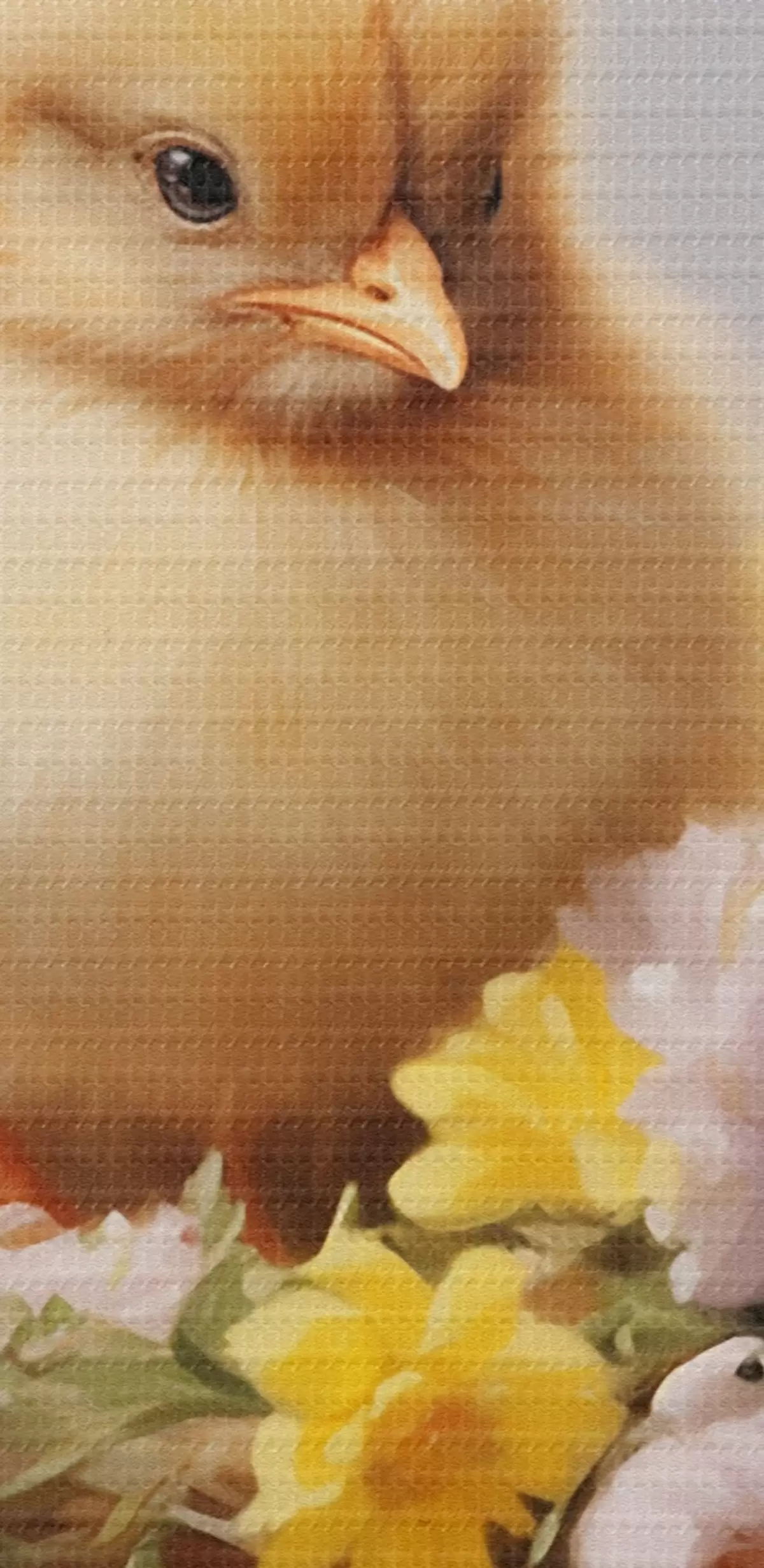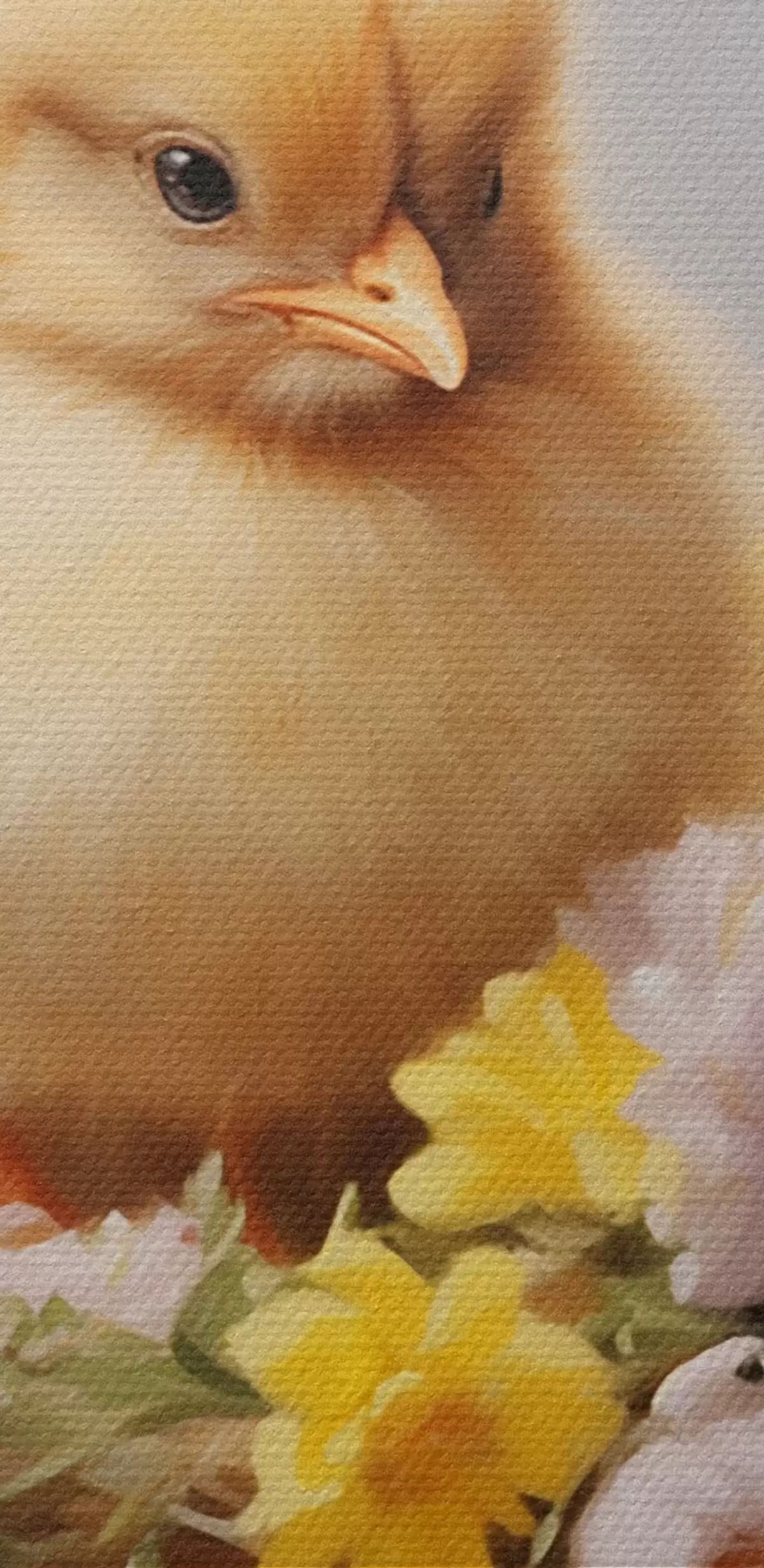 Obraz Żółte pisklę w koszyku z polnymi kwiatami Nr s44384