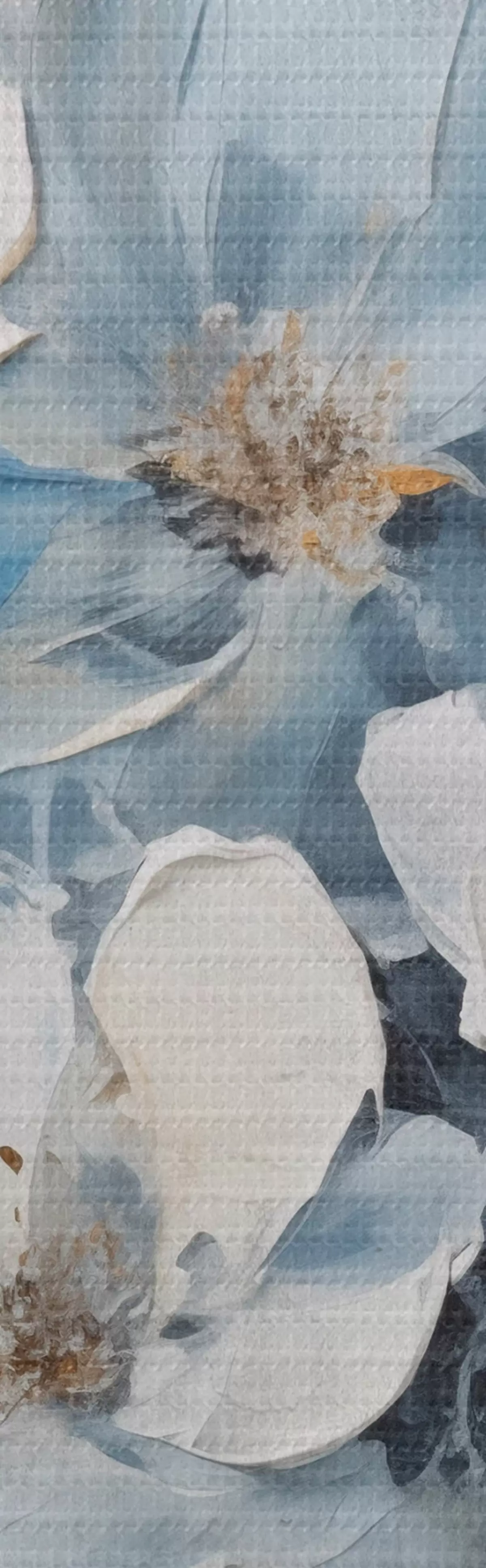 Drobny splot nici na tym płótnie przypomina powierzchnię profesjonalnych płócien artystycznych.