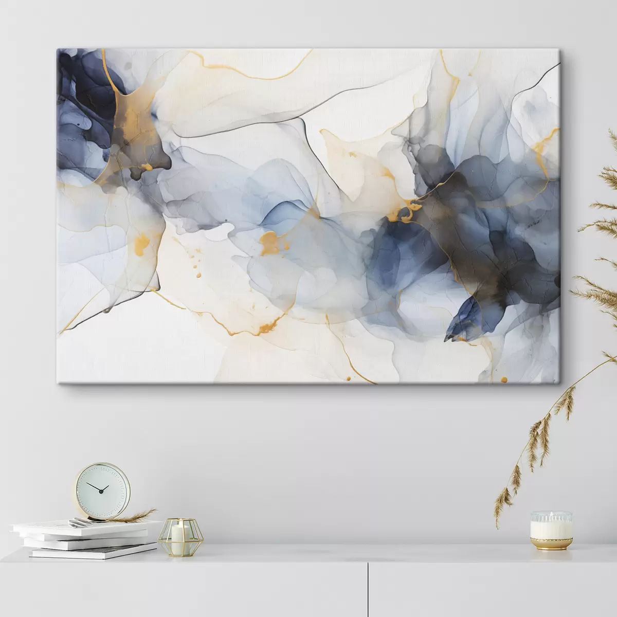 Obraz Abstrakcyjny obraz z niebieskim tuszem, płynne i organiczne kształty, delikatne tekstury na białym tle Nr s44397