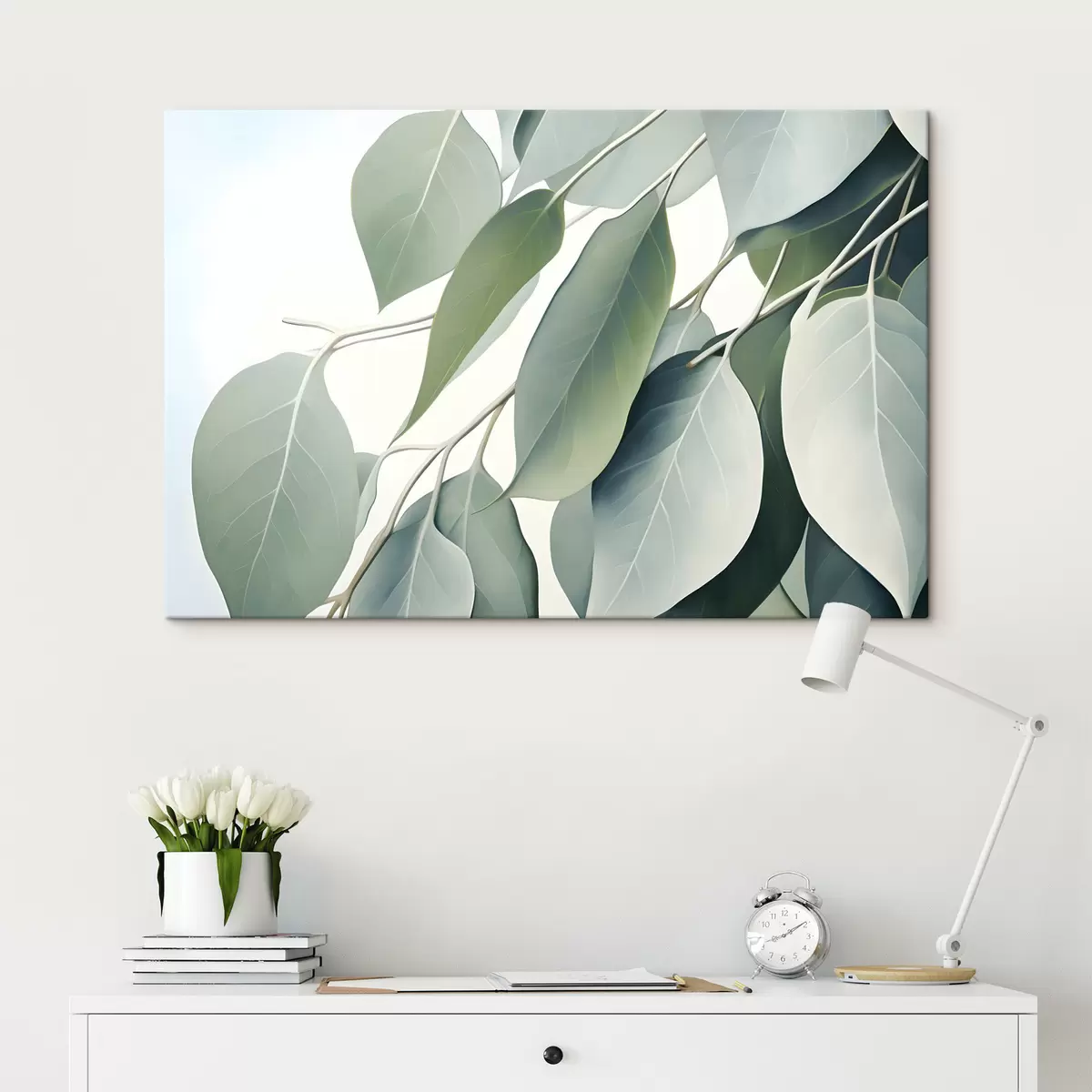 Obraz Liście eukaliptusa z miękką, stonowaną paletą kolorów, uspokajająca i naturalna estetyka s44410