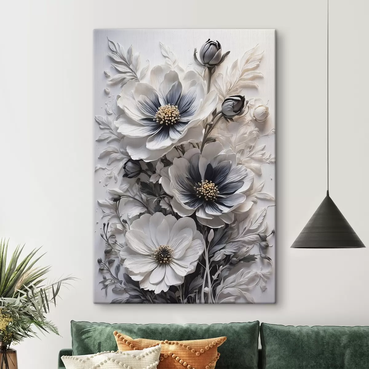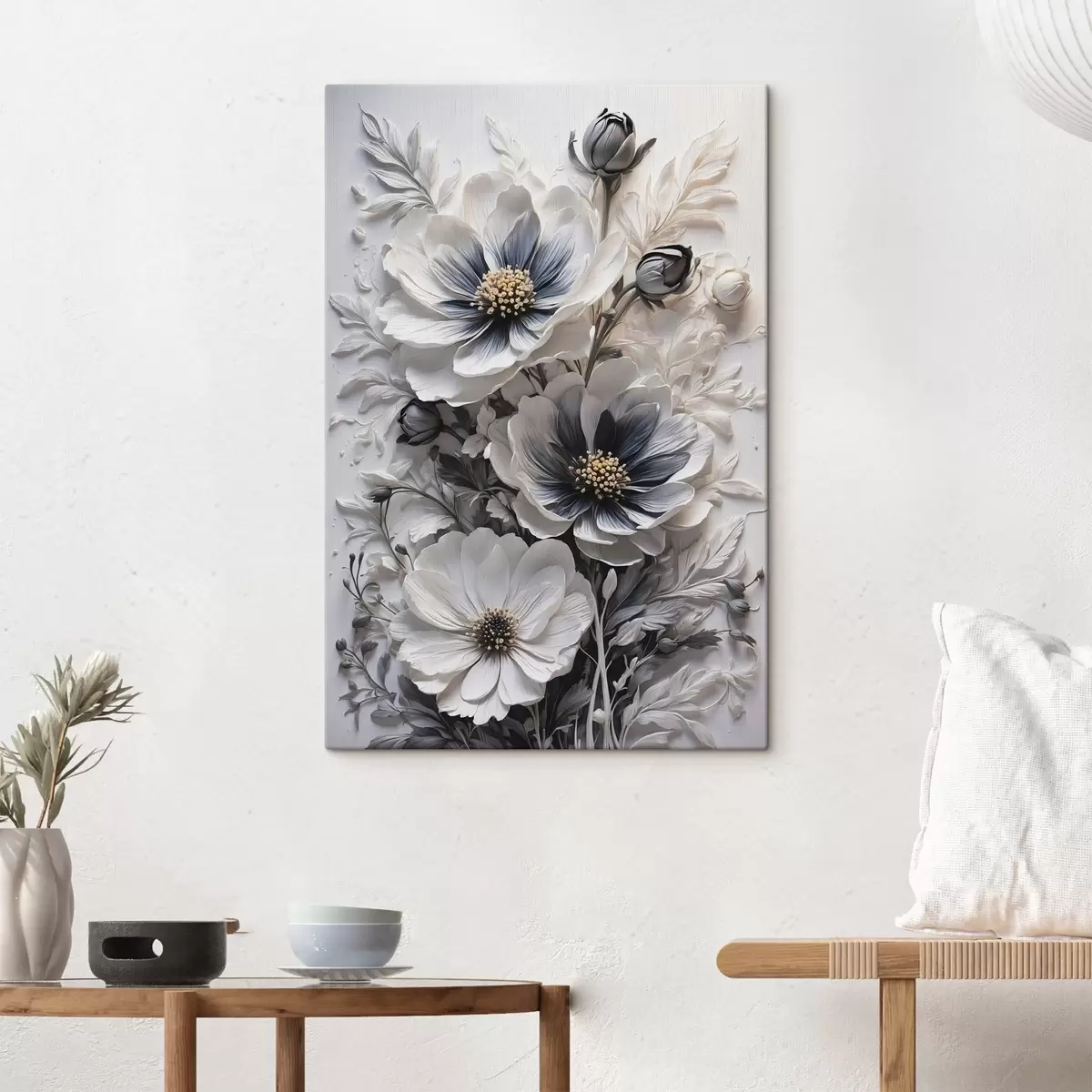 Obraz Czarno-białe kwiaty na białym tle Nr s44446
