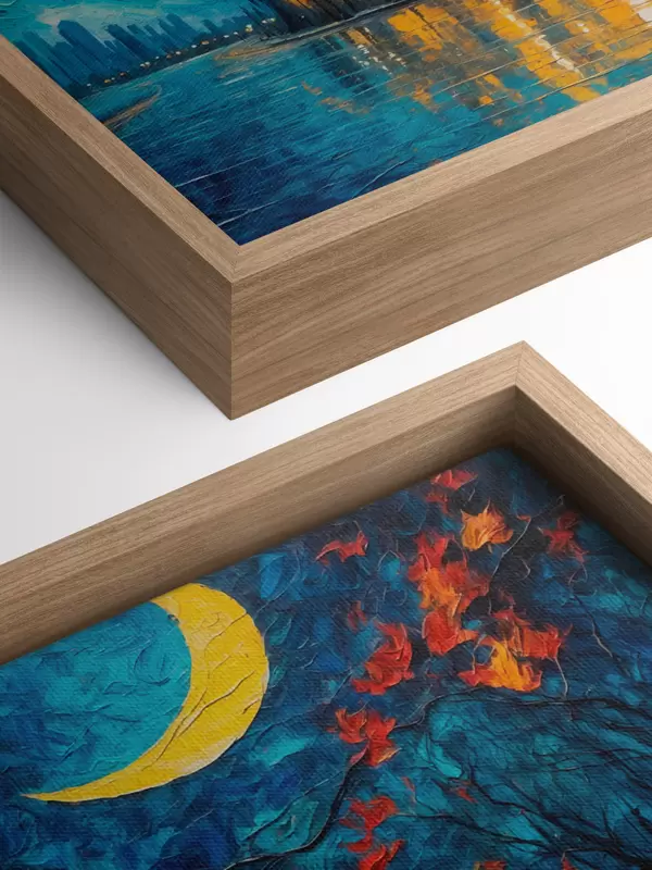 Sprzedajemy obrazy na blejtramie - jest to drewniana rama, na którą naciągnięte jest płótno. Tego obrazu nie trzeba oprawiać; można go powiesić bezpośrednio na ścianie.