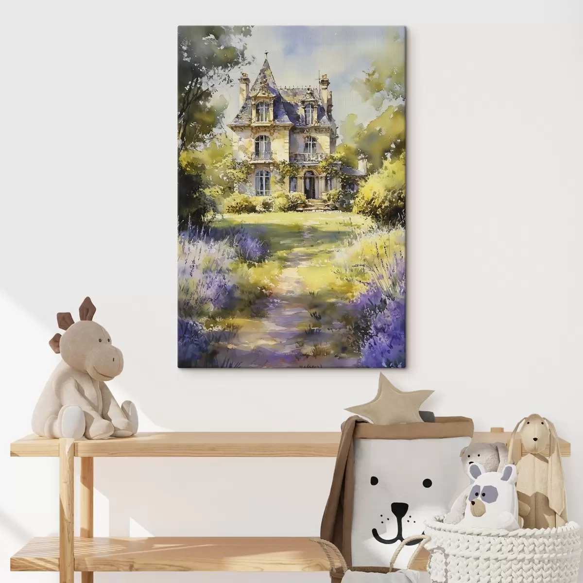 Obraz Francuski wiejski domek, styl akwareli, pola lawendy Nr s44501