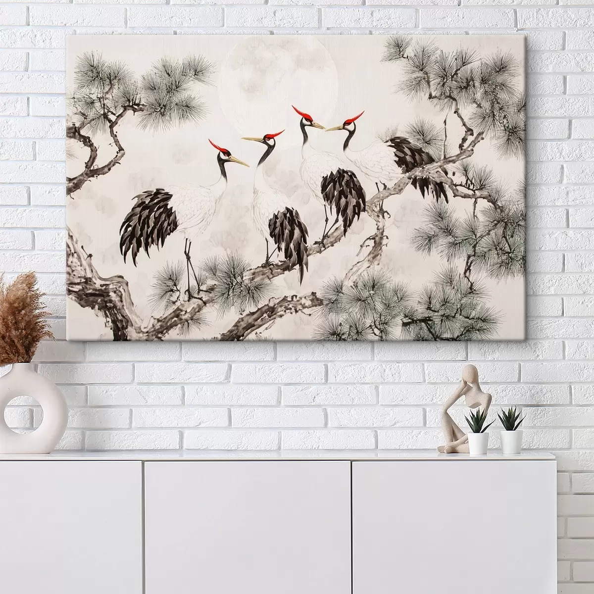 Obraz Chińska sztuka z żurawiami i sosnami, styl orientalny, natura s44503