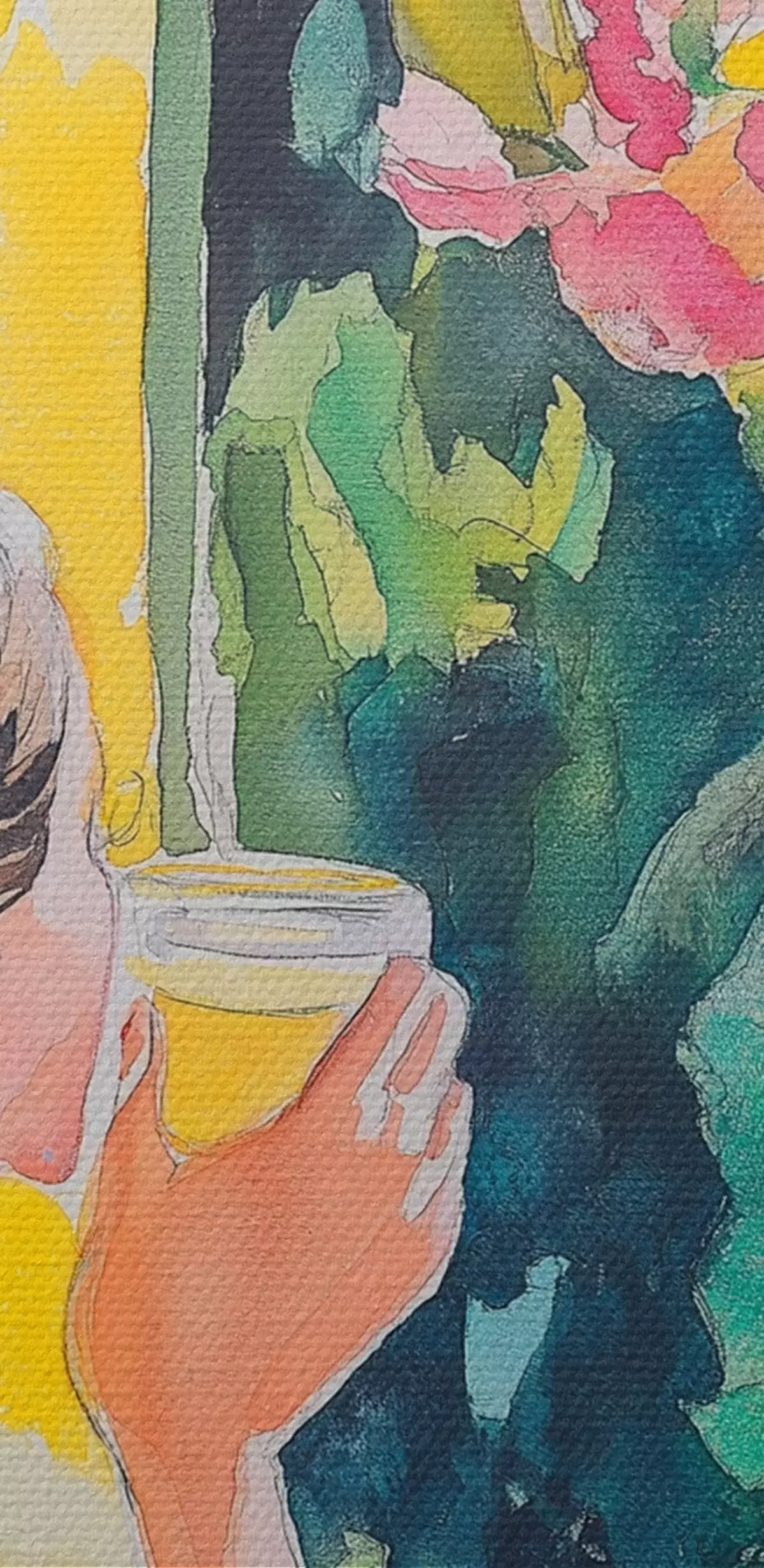 Obraz Letnie wibracje, dziewczyna w kawiarni, limoncello, Włochy, styl akwareli Nr s44505
