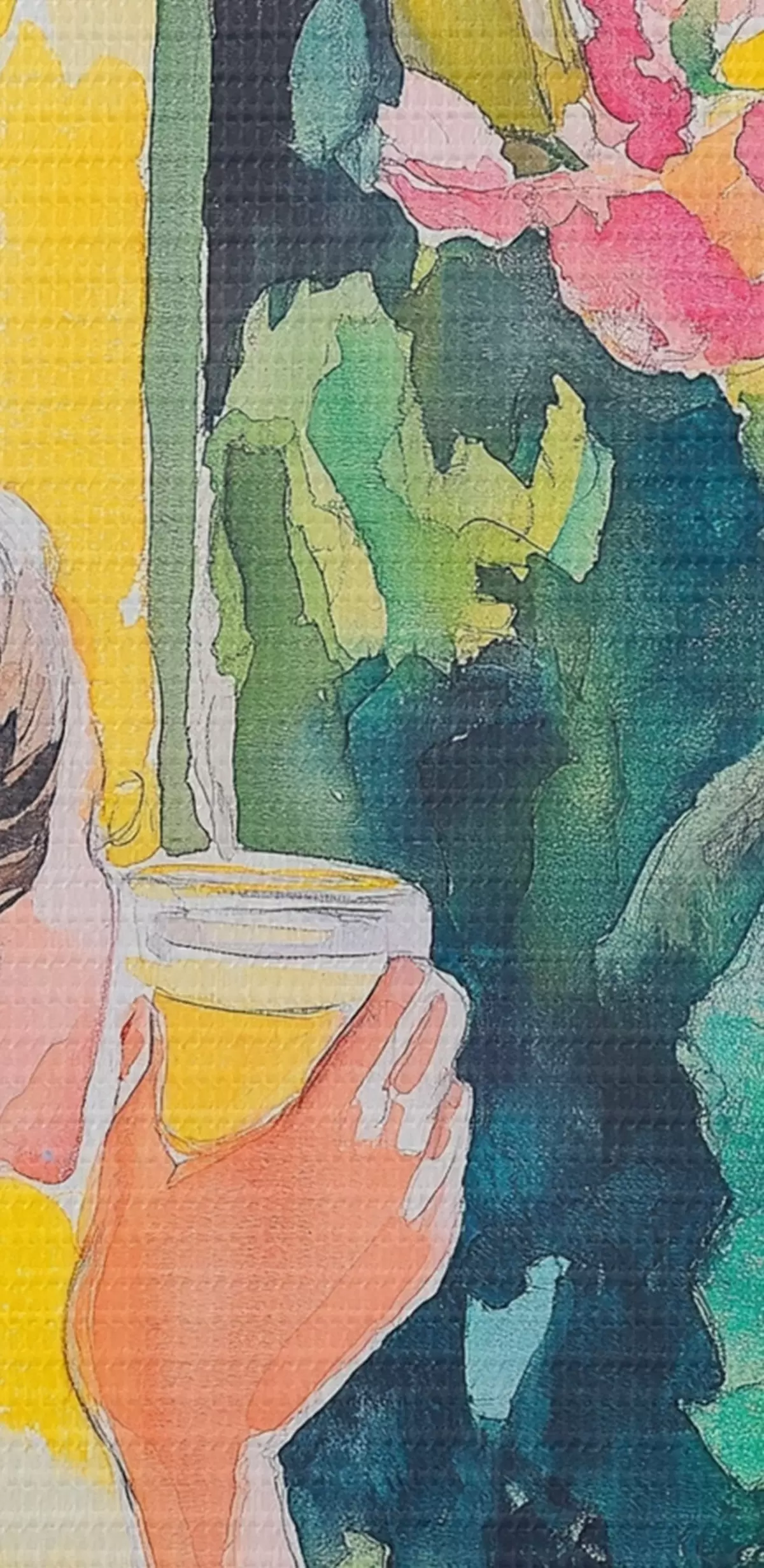 Obraz Letnie wibracje, dziewczyna w kawiarni, limoncello, Włochy, styl akwareli s44505