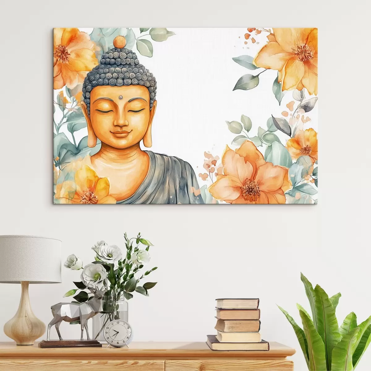 Obraz Budda otoczony pomarańczowymi kwiatami, styl akwareli Nr s44508