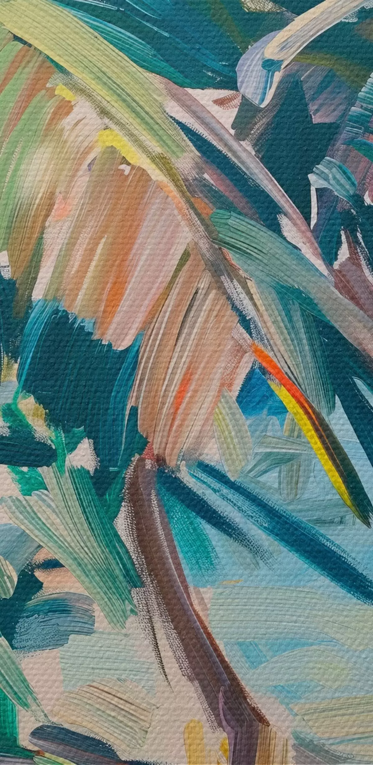 Obraz Abstrakcja palm, imitacja pociągnięć pędzla s44513
