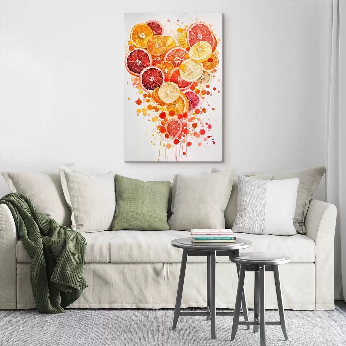 Obraz Zabawna kompozycja plasterków cytryny, pomarańczy, grejpfruta i limonki w kształcie serca Nr s44545