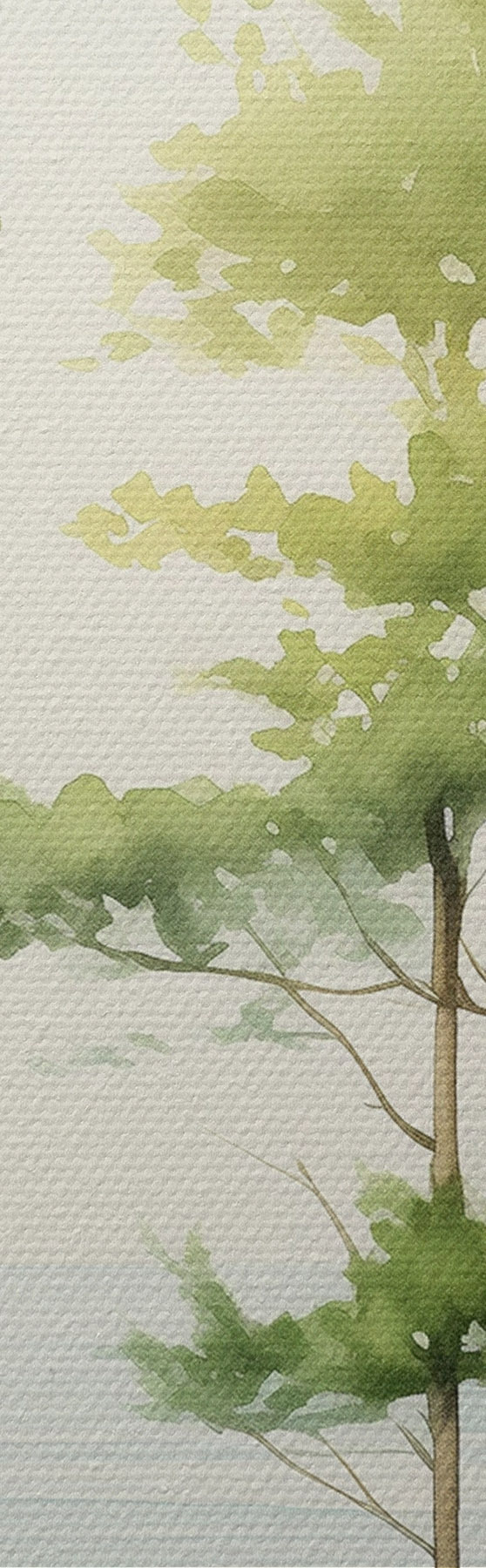 Obraz Zielony las sosnowy w pobliżu morza, styl akwareli Nr s44603