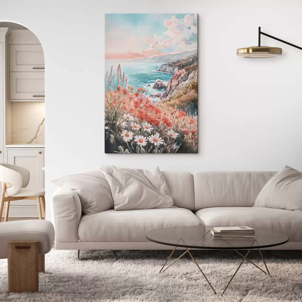 Obraz Portugalia wybrzeże o zachodzie słońca, łąka kwiaty Nr s44612