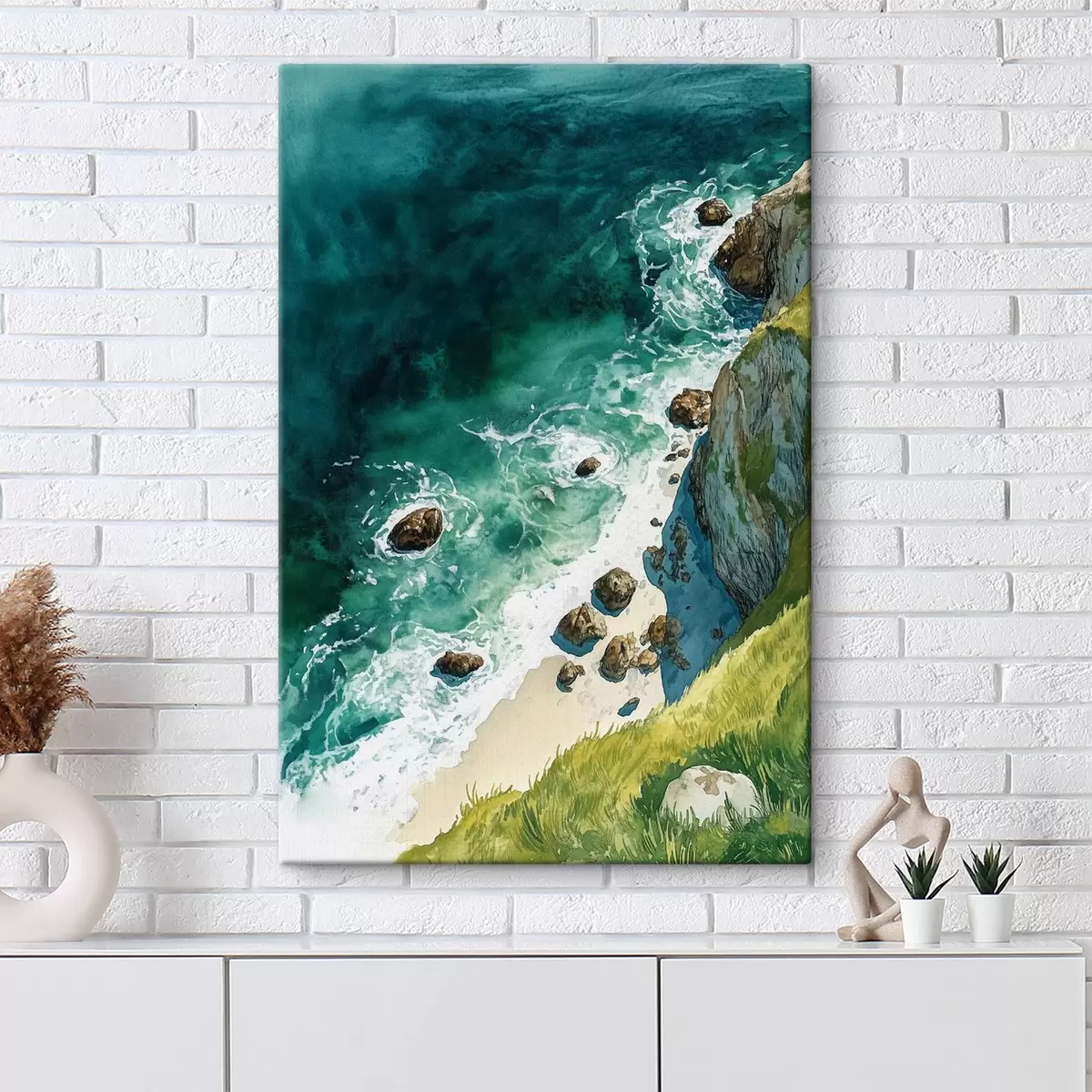 Obraz Akwamarynowa woda, ocean, skalne klify, Portugalia Nr s44617