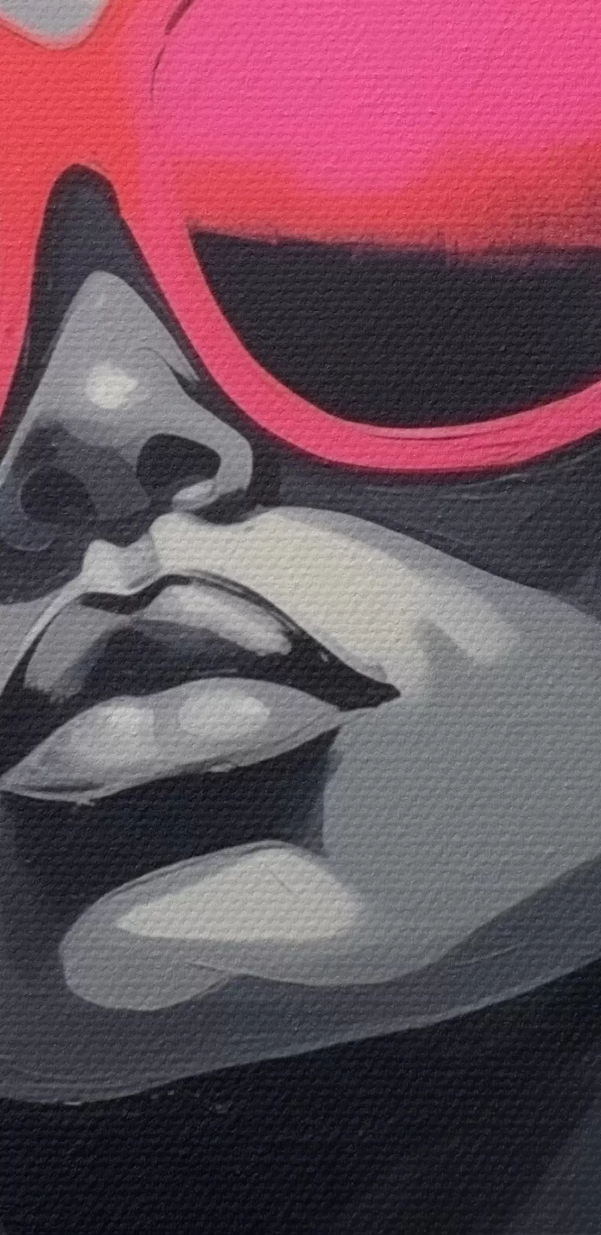 Obraz Dziewczyna w różowych okularach, czarno-biały styl Nr s44624