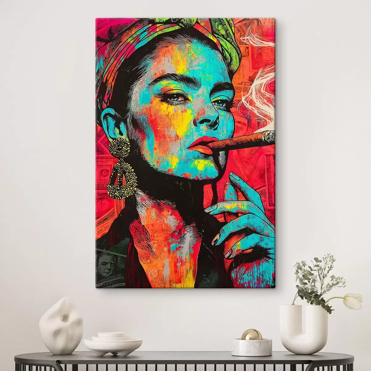 Obraz Dziewczyna z cygarem, styl pop art s44625