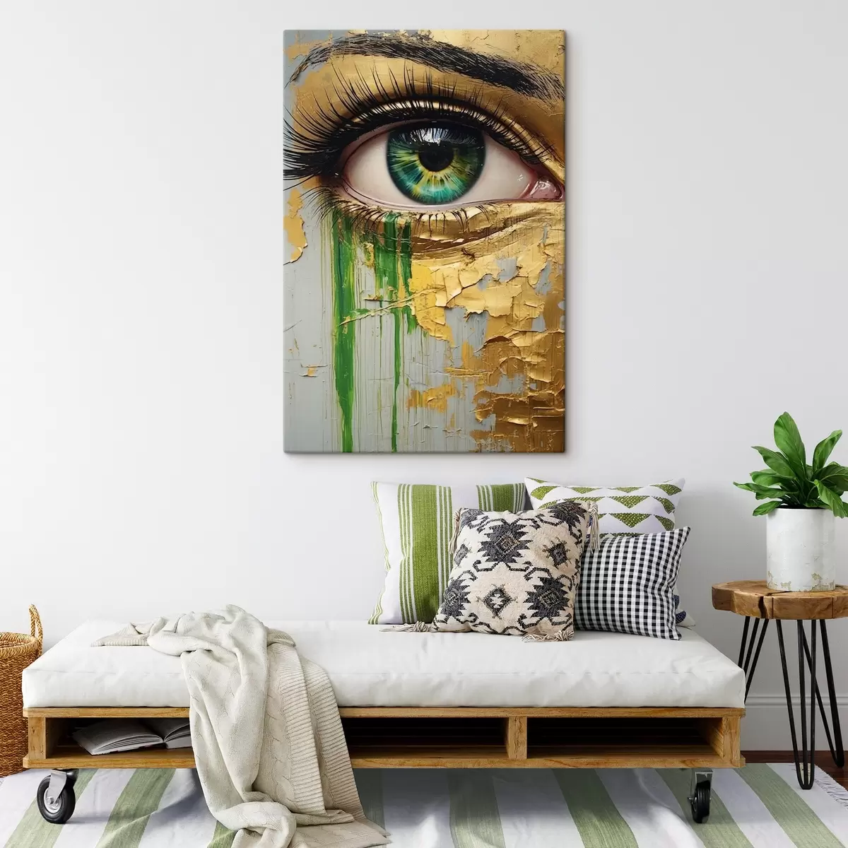 Obraz Zielone oko na tle popękanej farby Nr s44690