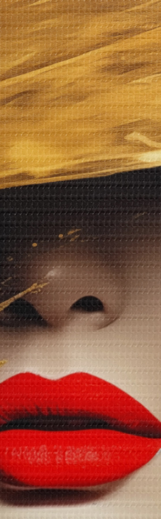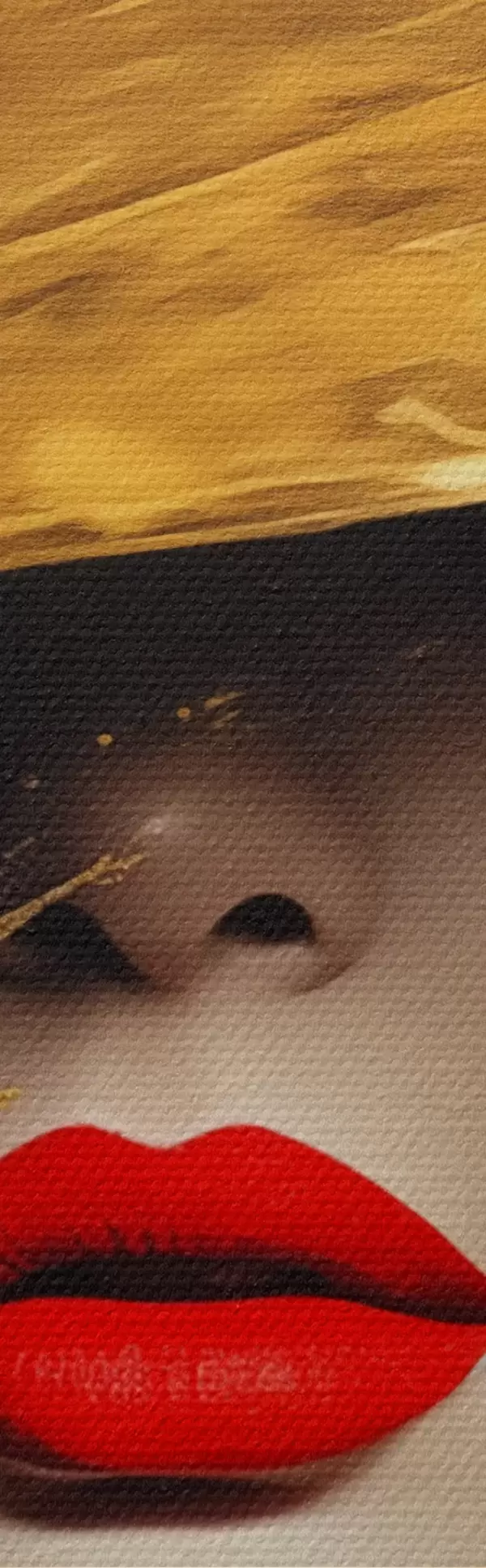 Obraz Kobieca twarz z czerwoną szminką pod szerokim kapeluszem Nr s44691