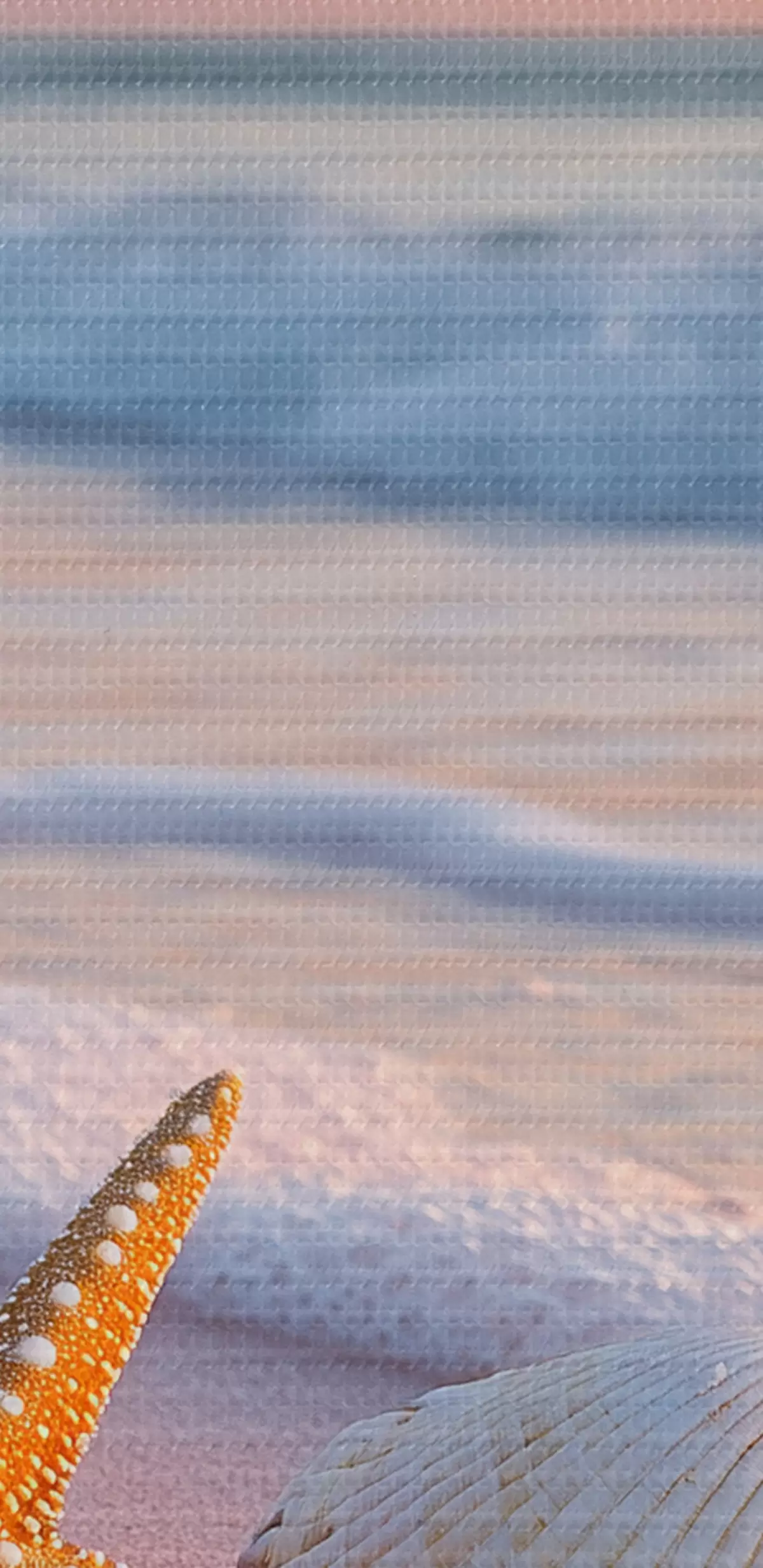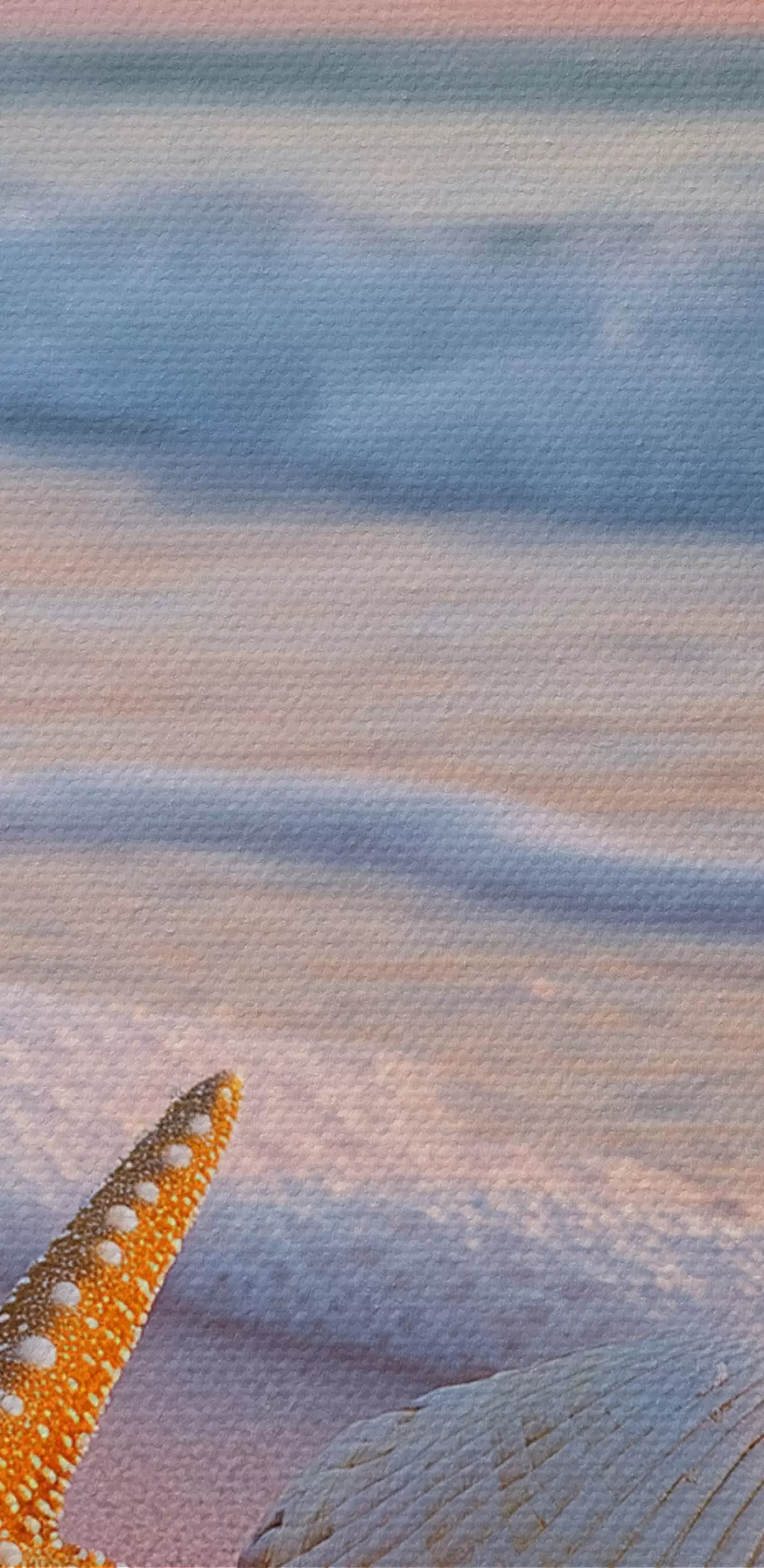 Obraz Wybrzeże morskie z rozgwiazdami, muszlami i falami Nr s44714
