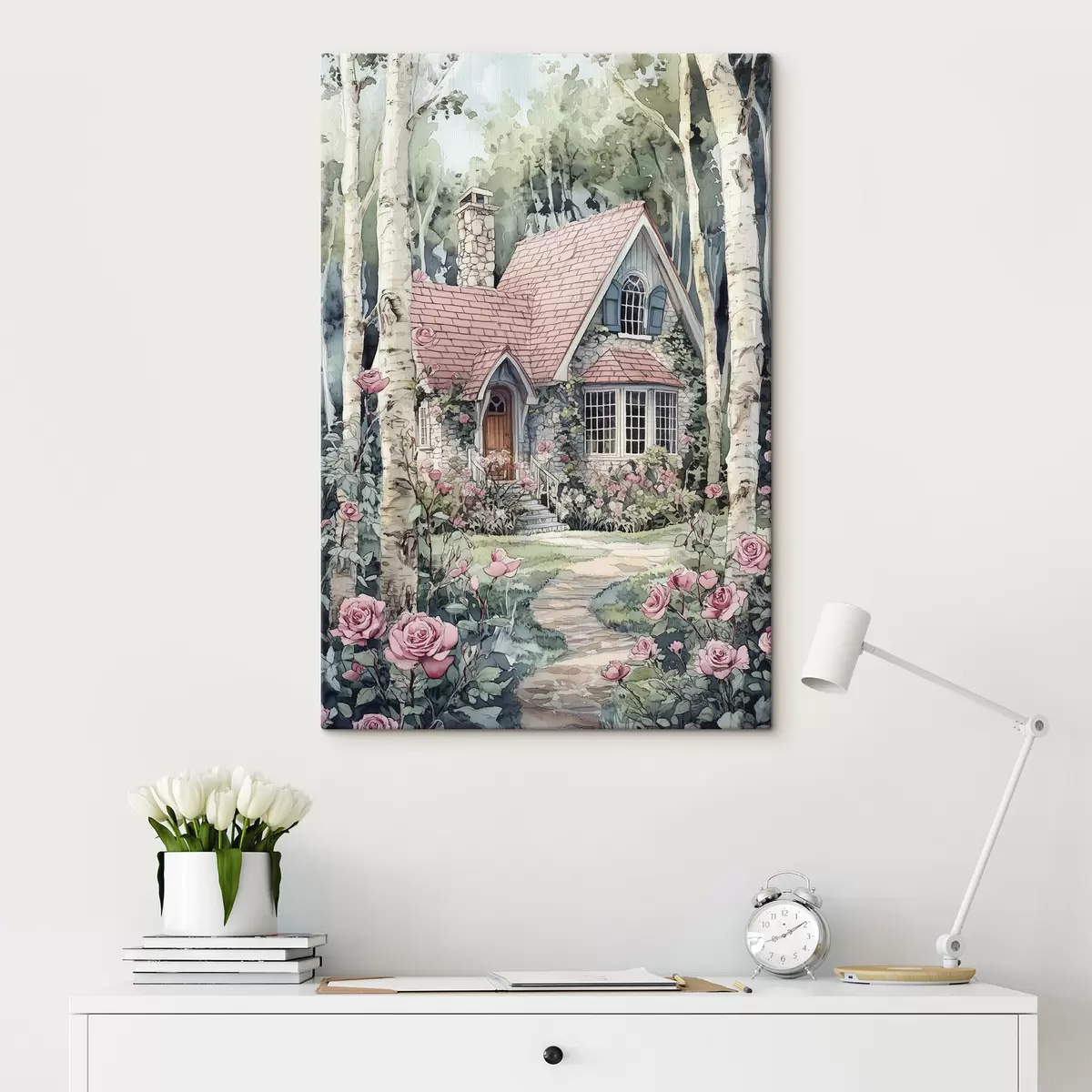 Obraz Piękny dom w brzozach, ogród różany s44721