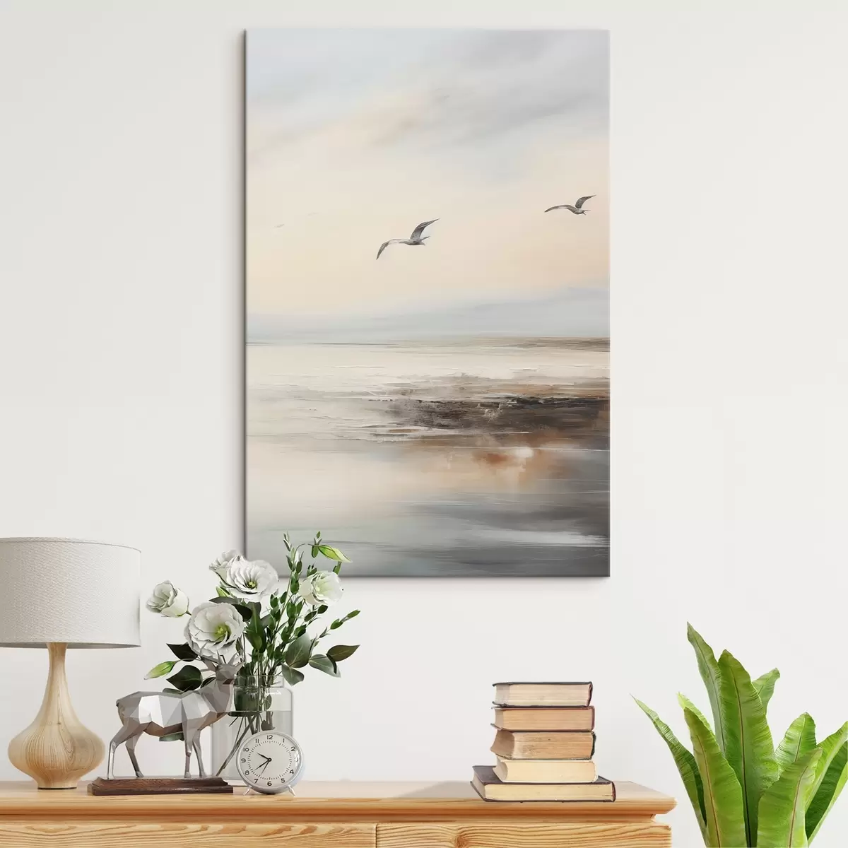 Obraz Pastelowy krajobraz z latającymi mewami Nr s44763