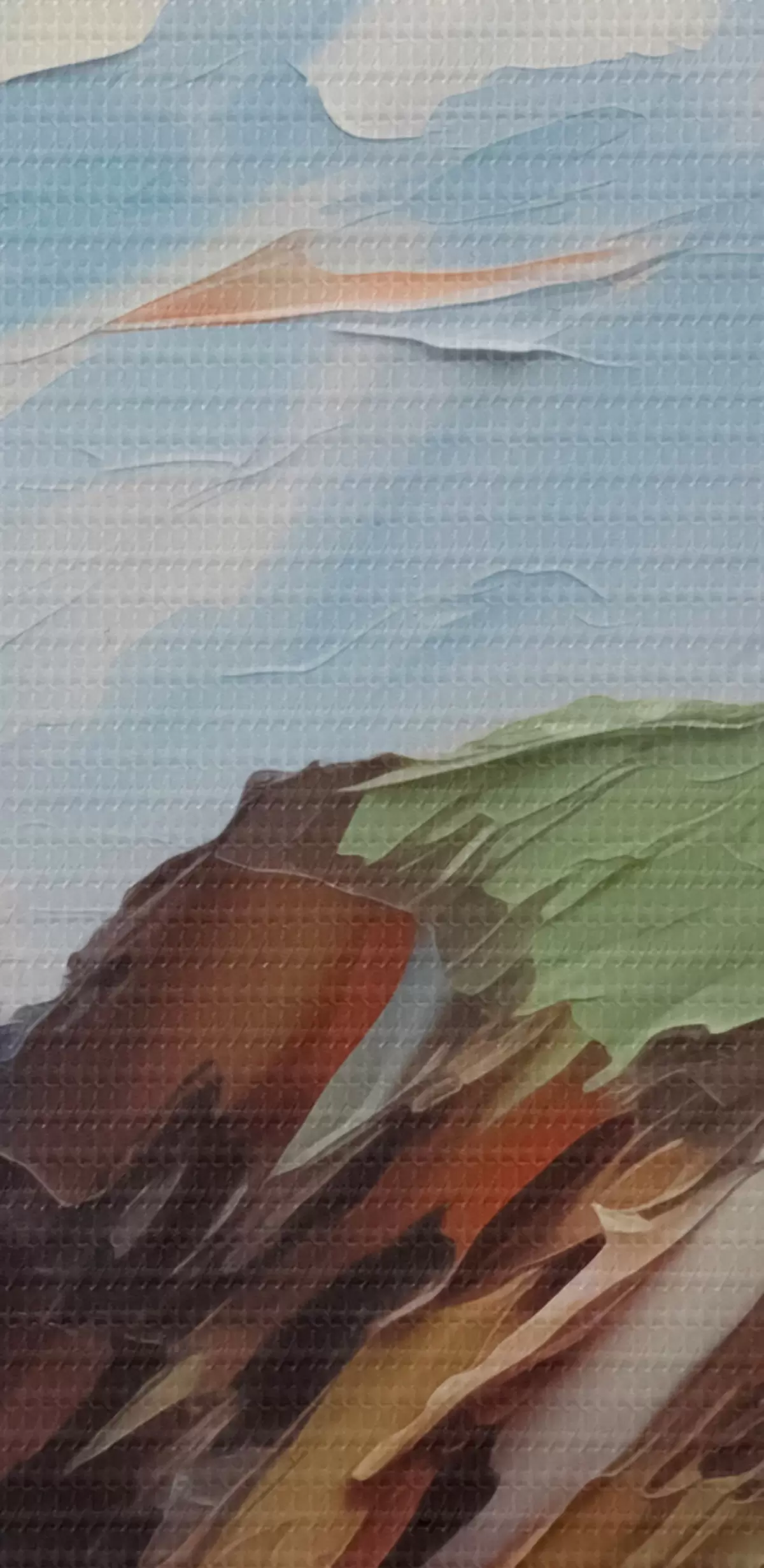Drobny splot nici na tym płótnie przypomina powierzchnię profesjonalnych płócien artystycznych.