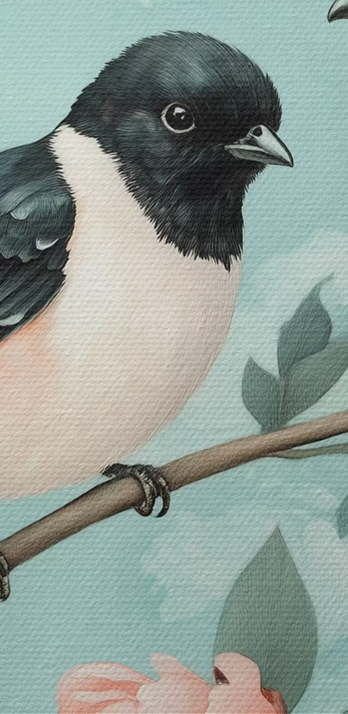 Obraz Dwa ptaki na gałęzi z piwoniami Nr s44786
