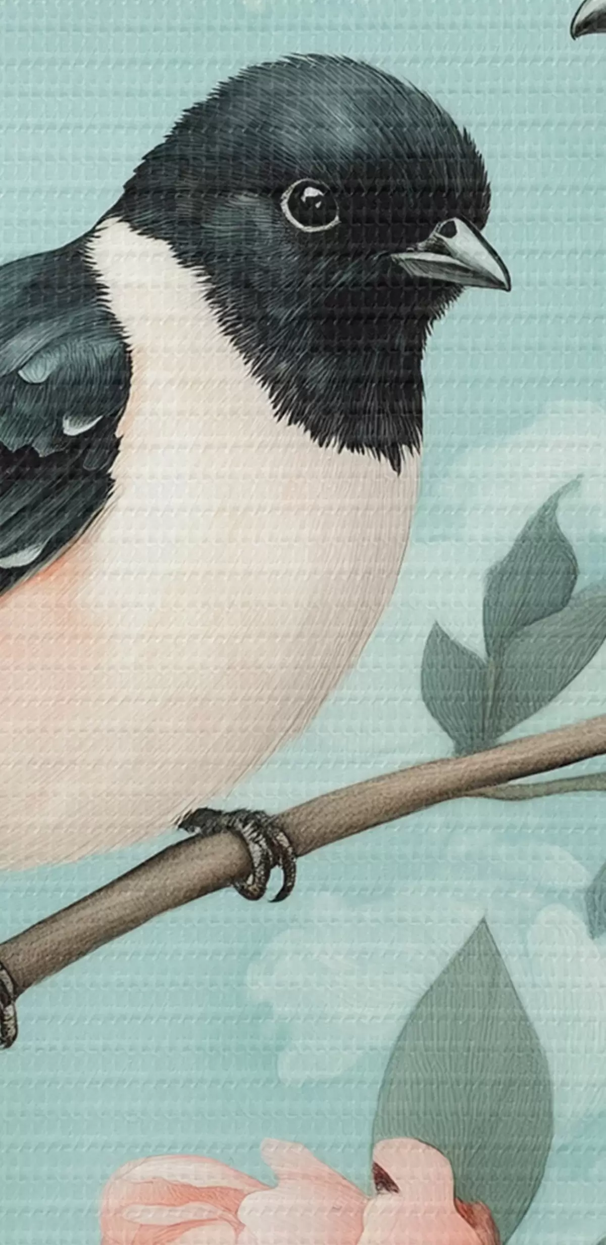Obraz Dwa ptaki na gałęzi z piwoniami  s44786