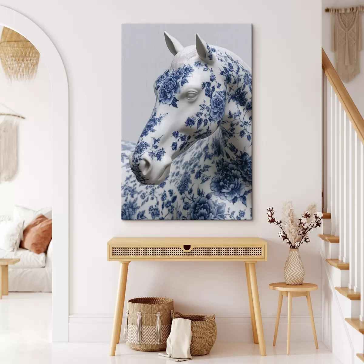 Obraz Porcelanowy koń z nadrukiem niebieskich kwiatów Nr s44789