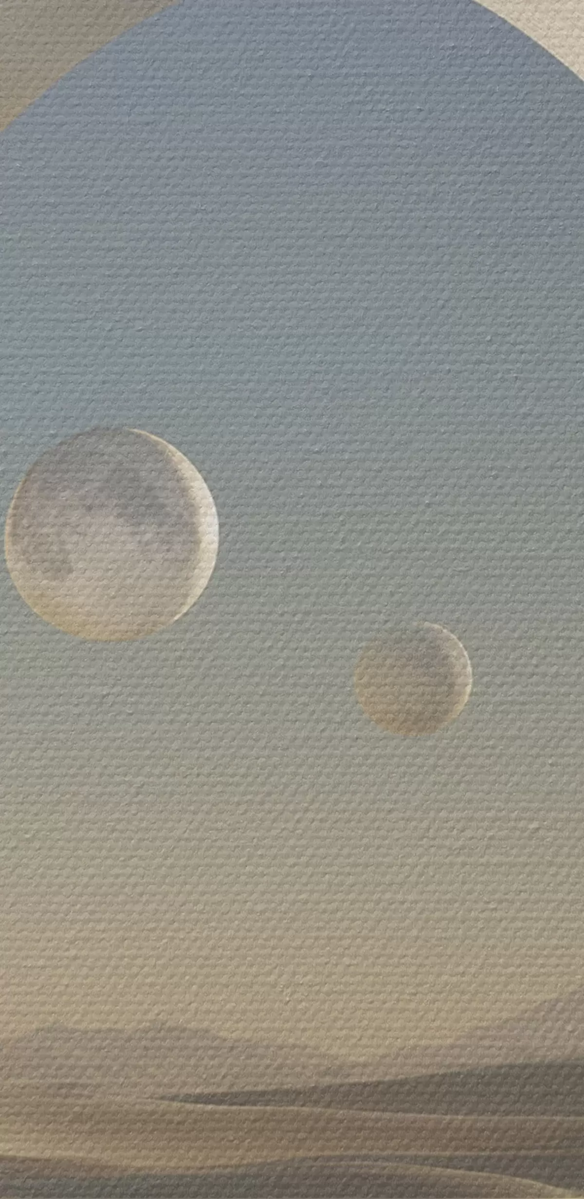 Obraz Futurystyczny krajobraz z wydmami i planetami Nr s44791