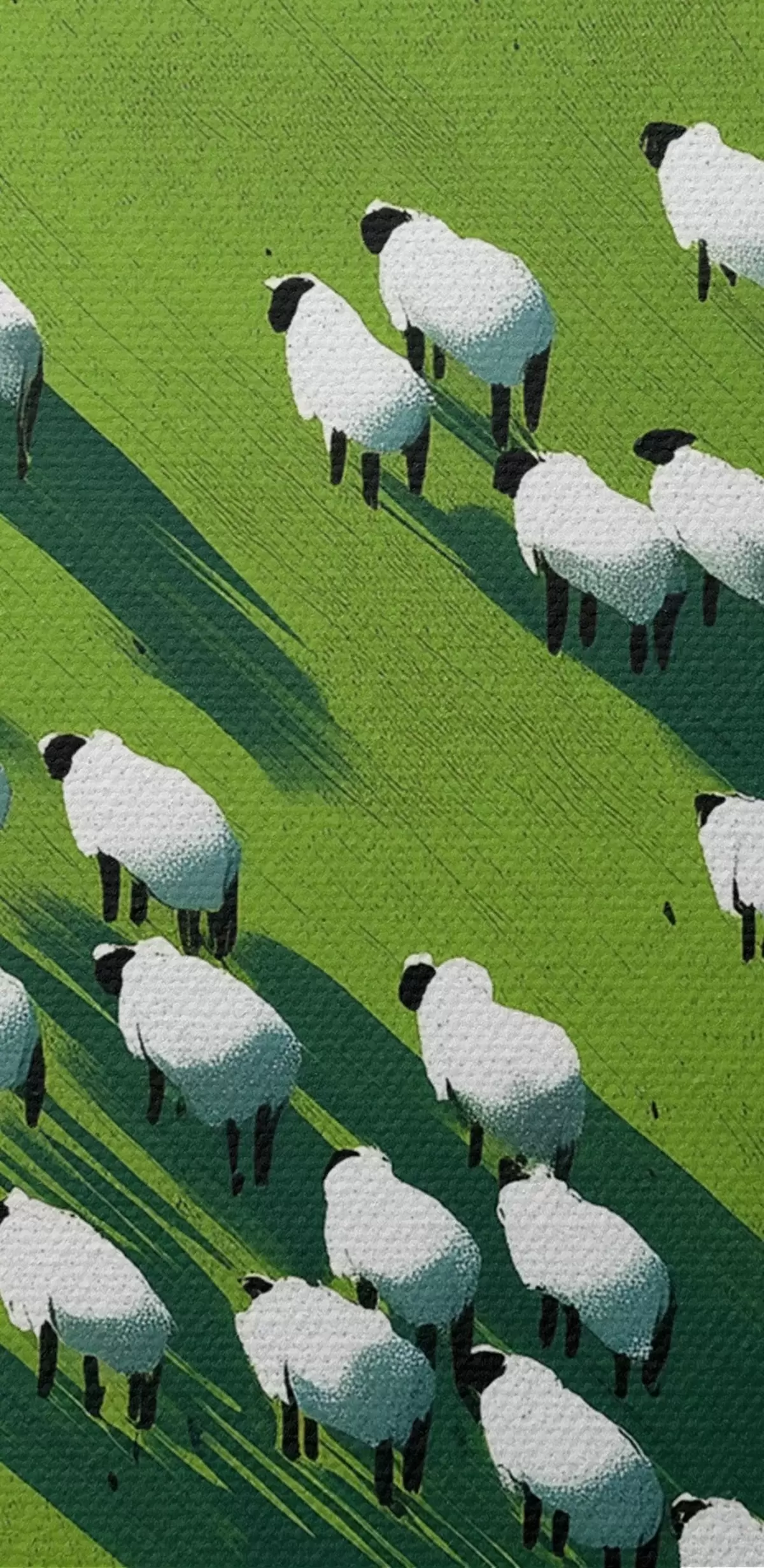 Obraz Zielone pole ze stadem owiec, abstrakcja, widok z lotu ptaka s44793