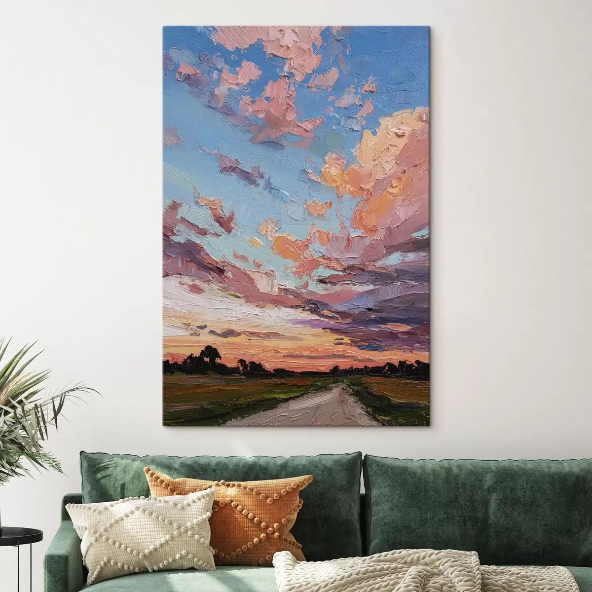 Obraz Niebo o zachodzie słońca, droga w polu, żywe pociągnięcia pędzla, imitacja stylu olejnego  s44795
