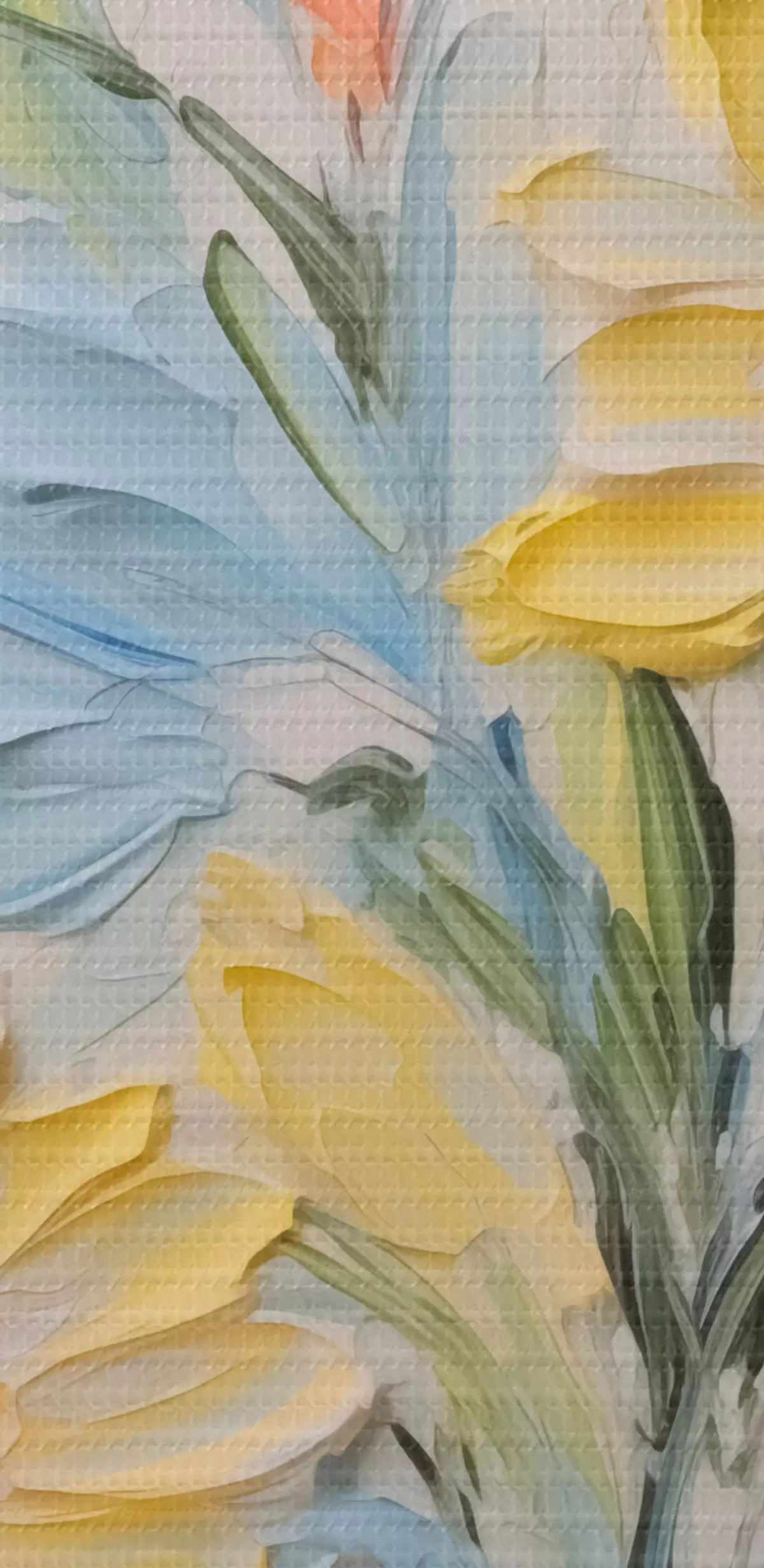 Drobny splot nici na tym płótnie przypomina powierzchnię profesjonalnych płócien artystycznych.