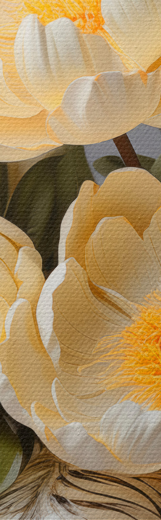 Drobny splot nici na tym płótnie przypomina powierzchnię profesjonalnych płócien artystycznych.
