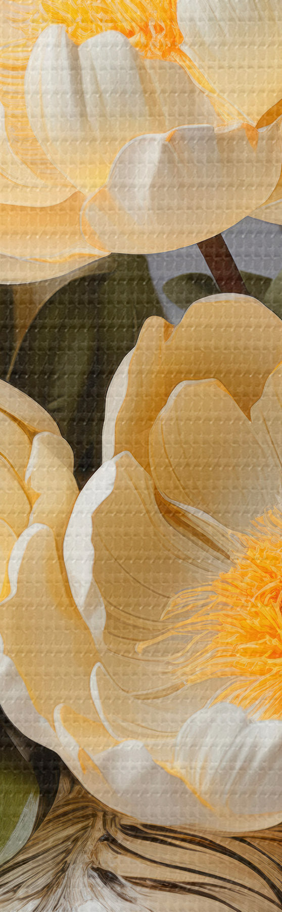 Do zamówienia dostępne są trzy rodzaje materiału: Economic Canvas - gęsty i trwały materiał do druku cyfrowego, identyczny z płótnem malarskim, wodoodporna powierzchnia, realistyczne odwzorowanie szczegółów, materiał średnioziarnisty. Premium Canvas - tekstura przypominająca płótno malarskie (przeplatane drobne nitki). Miękka, szczegółowa reprodukcja obrazu na matowej powierzchni. Eco-Premium - wysokiej jakości tkanina w 100% bawełniana. Dzięki naturalnym włóknom bawełnianym materiał jest trwały i odporny na zużycie. Doskonałe odwzorowanie kolorów i szczegółów.