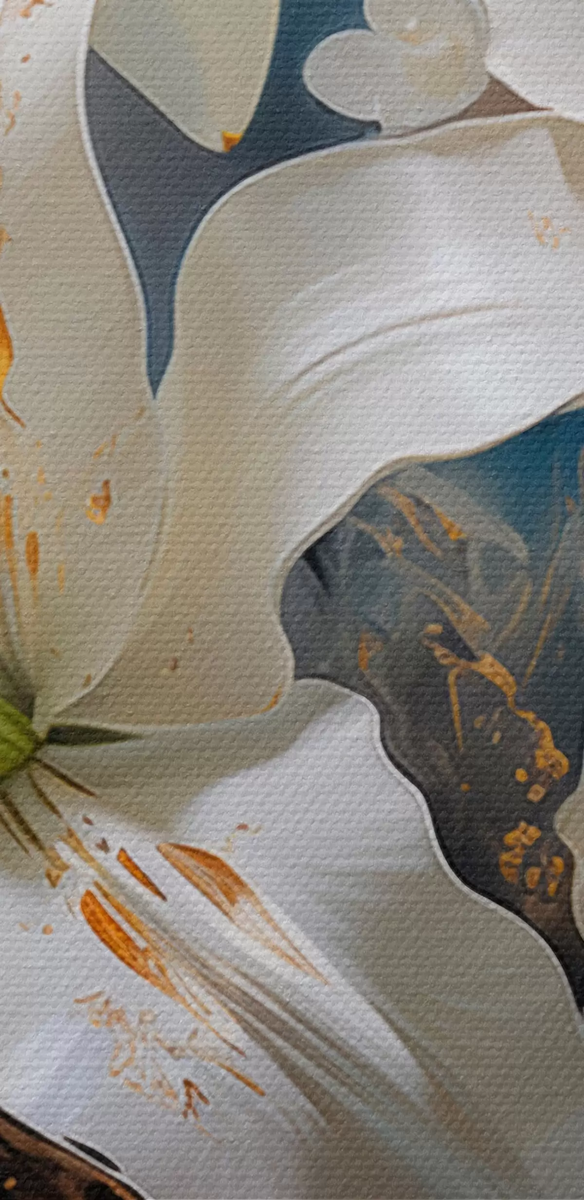 Drobny splot nici na tym płótnie przypomina powierzchnię profesjonalnych płócien artystycznych.
