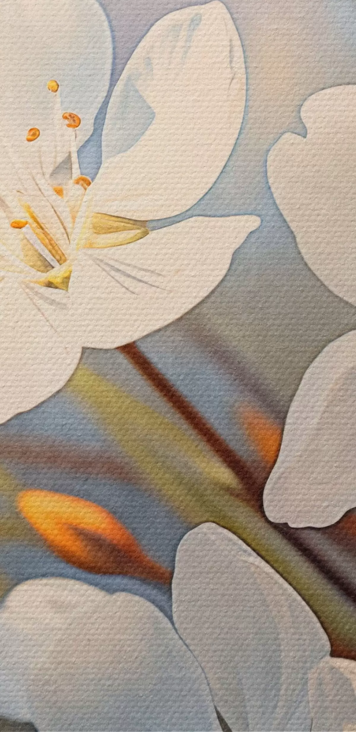 Obraz Białe teksturowane kwiaty wiśni w stylu akwareli, delikatne płatki, sezon wiosenny s44859