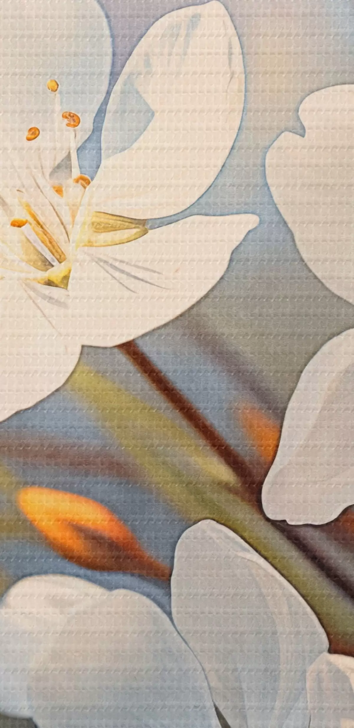 Drobny splot nici na tym płótnie przypomina powierzchnię profesjonalnych płócien artystycznych.