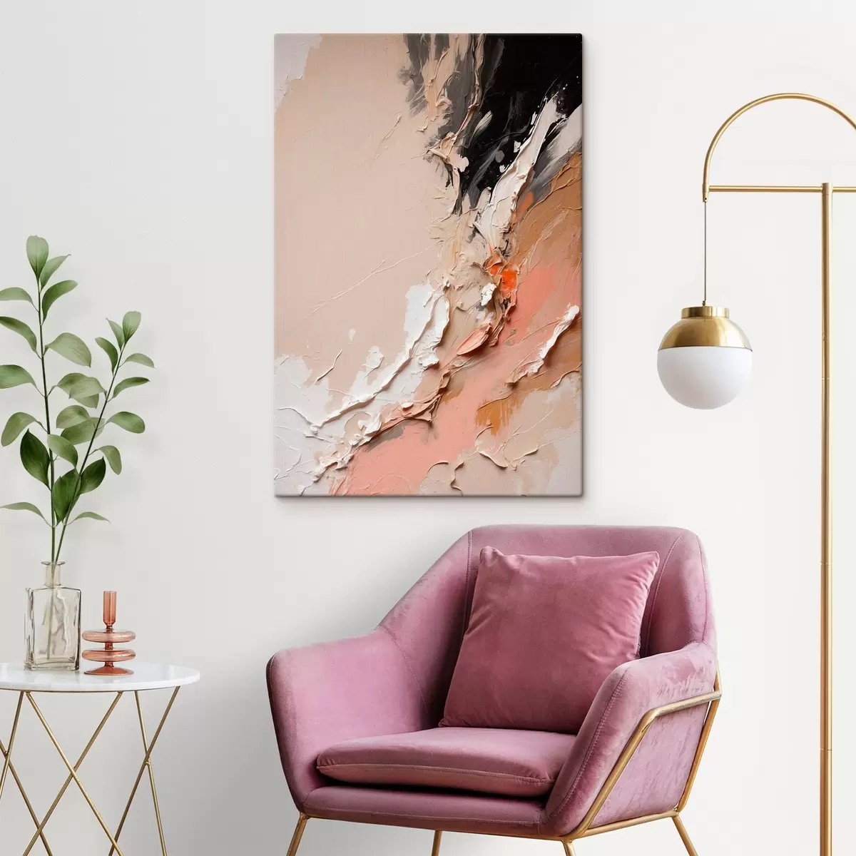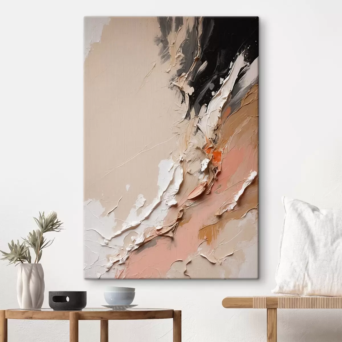 Obraz Beżowo-czarna abstrakcja z akcentami różu i bieli s44875