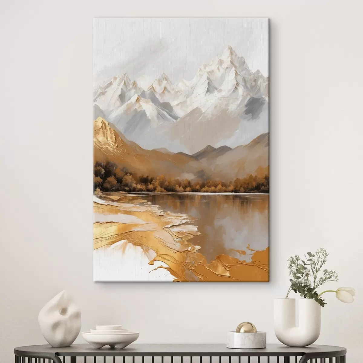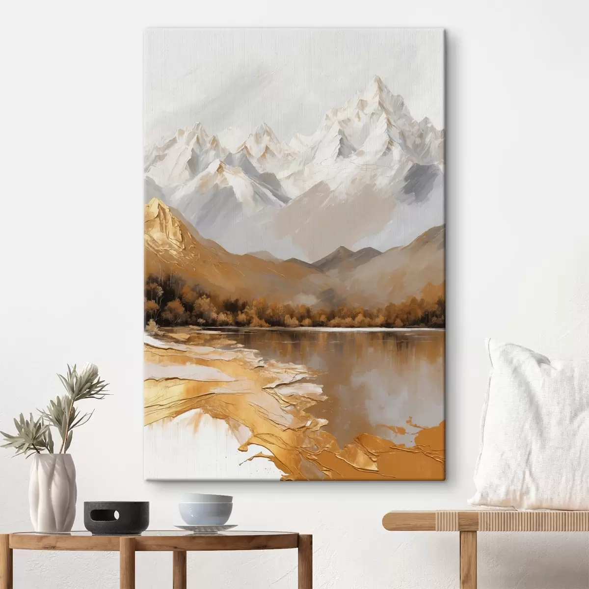 Obraz Krajobraz górski z jeziorem w ciepłych kolorach Nr s44877