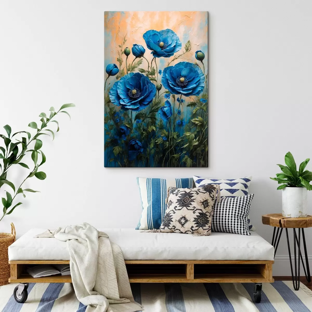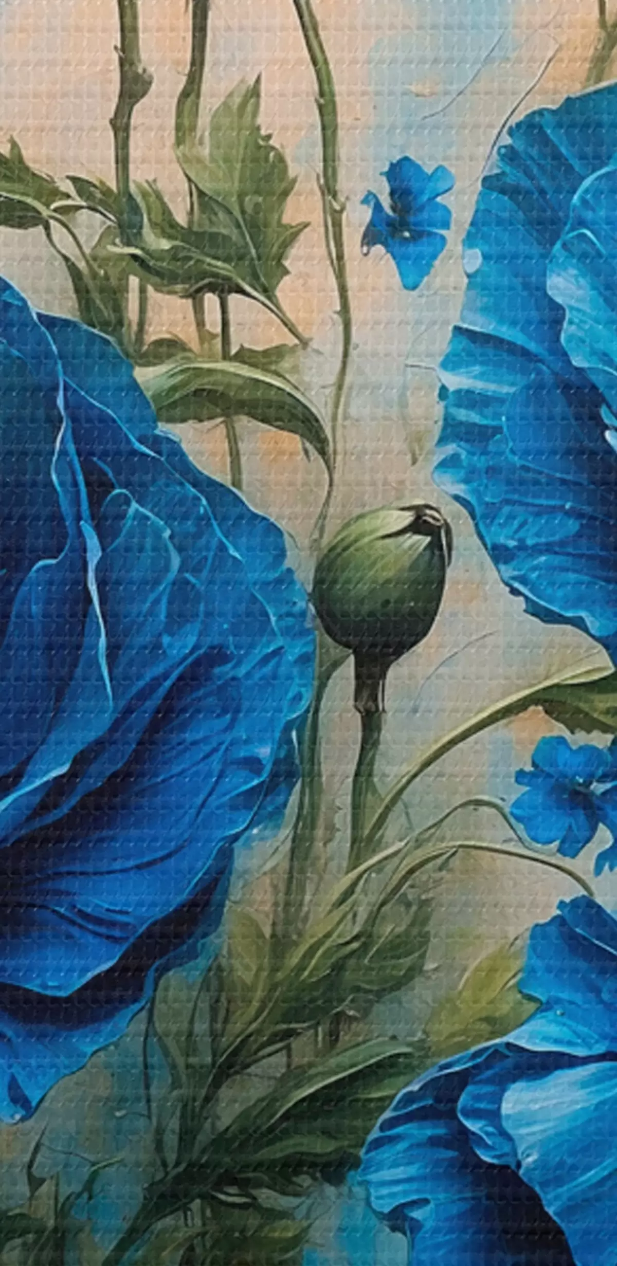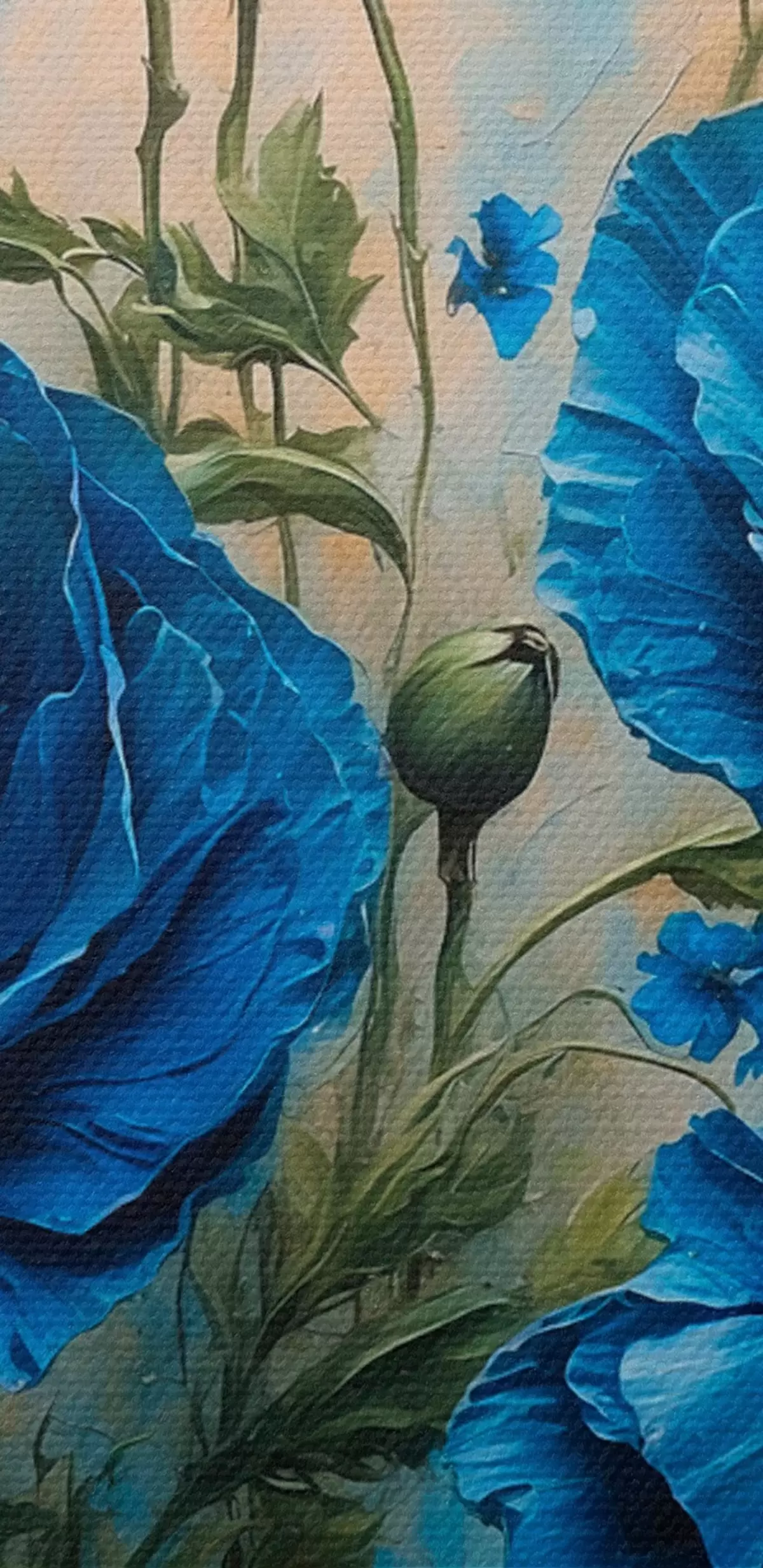 Obraz Niebieskie maki na pastelowym tle z liśćmi Nr s44882