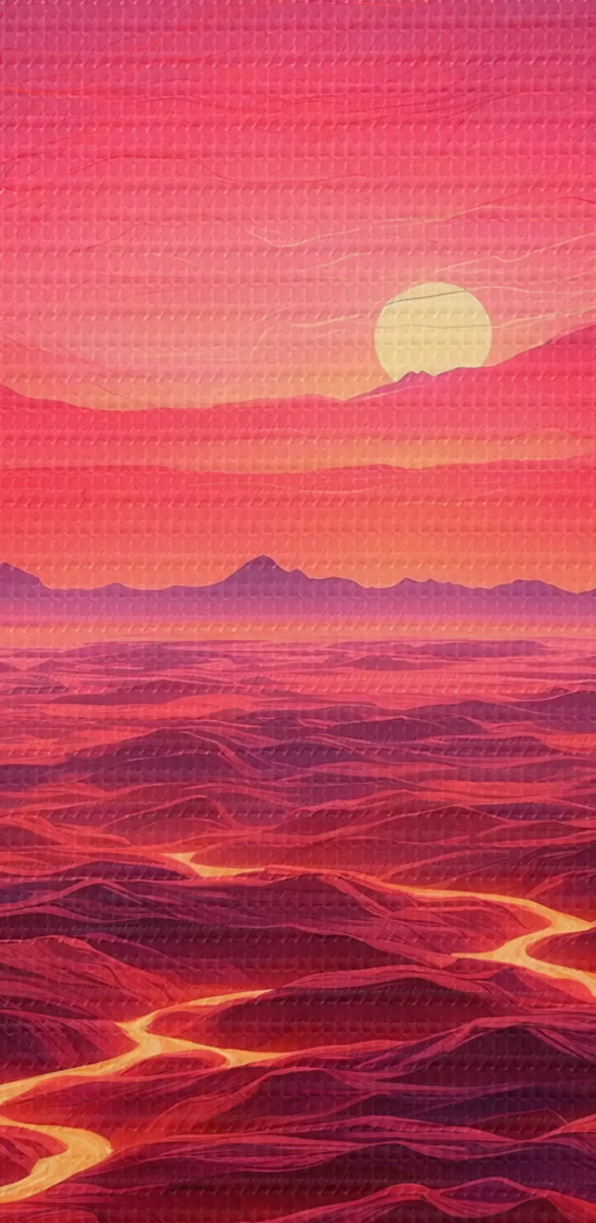 Obraz Gorący krajobraz ze strumieniami lawy pod czerwonym niebem Nr s44886