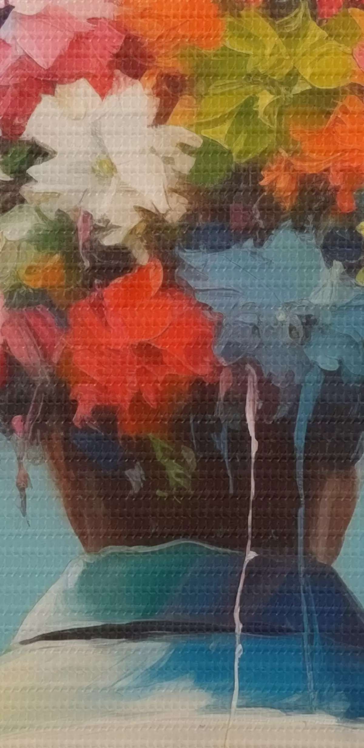 Drobny splot nici na tym płótnie przypomina powierzchnię profesjonalnych płócien artystycznych.